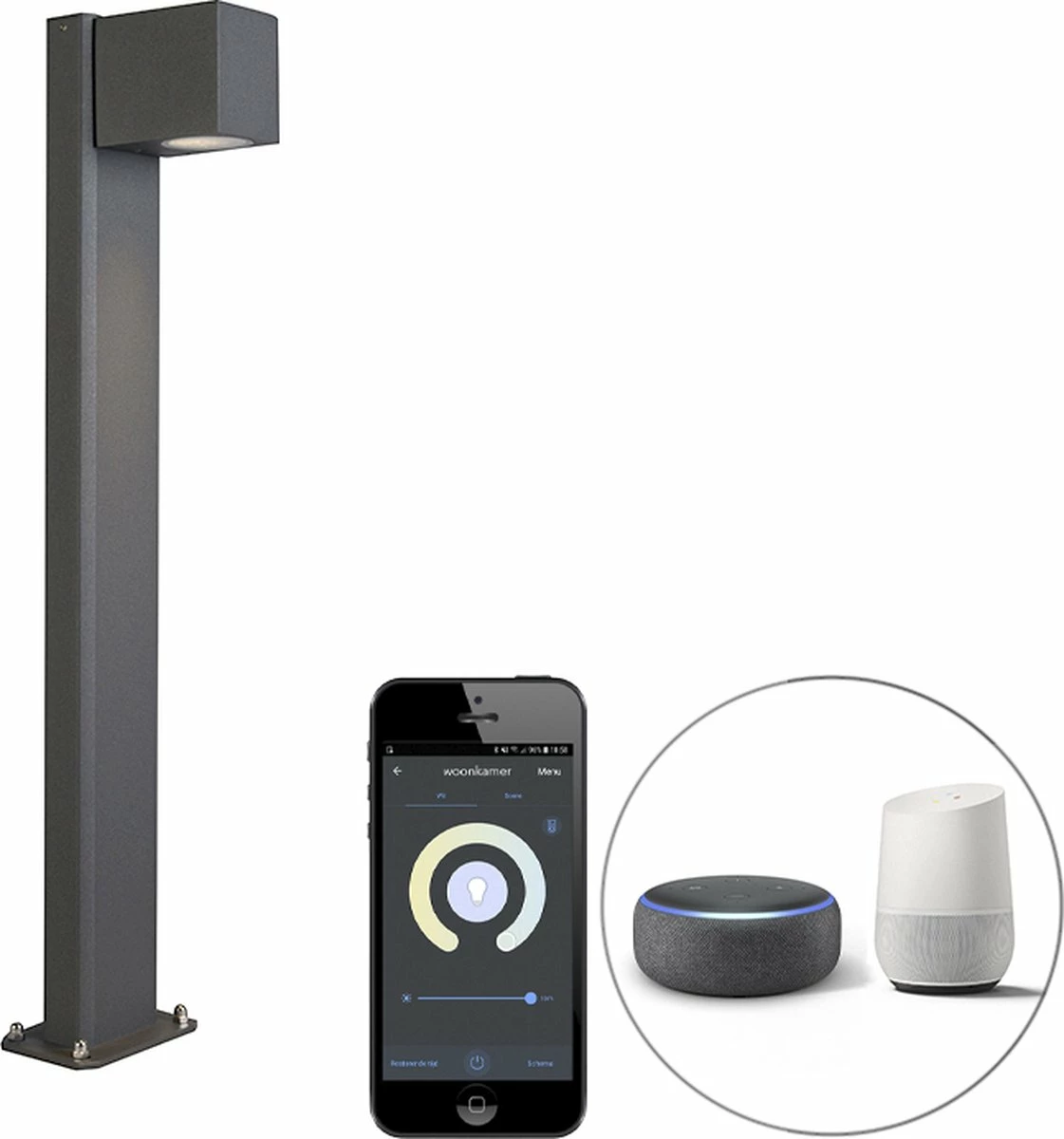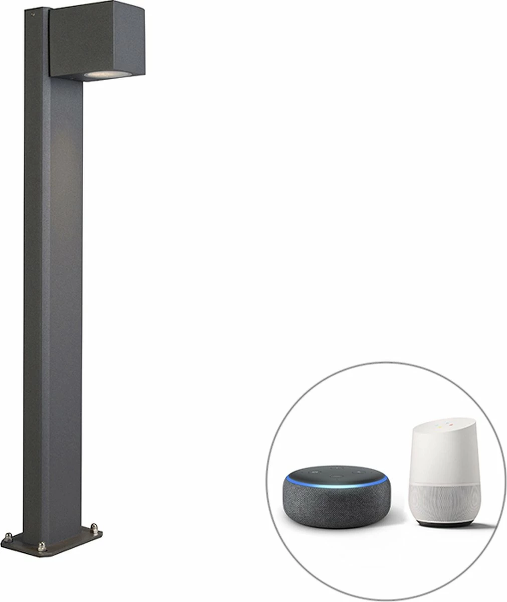 QAZQA Baleno – Lampe D’extérieur LED Moderne Et Smart | Lampadaire Pour Extérieur Avec WiFi – 1 Lumière – H 65 Cm – Gris Foncé – Éclairage Extérieur