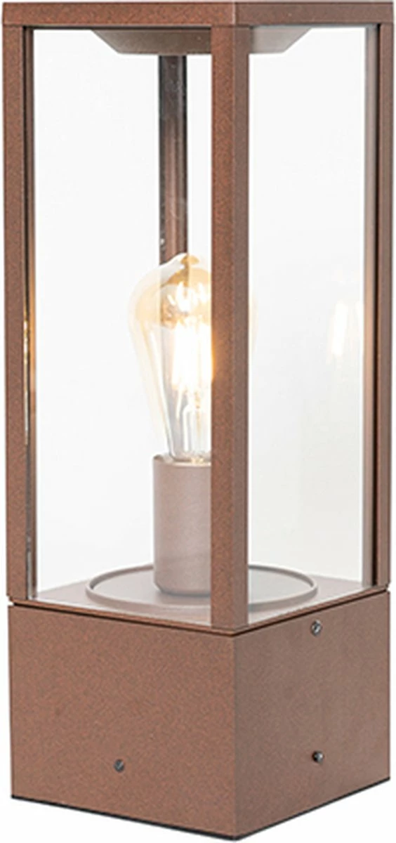 QAZQA Charlois – Lampe D’extérieur Sur Pied Industrielle | Lampadaire D’extérieur – 1 Lumière – H 40 Cm – Brun Rouille – Industriel – Éclairage Extérieur