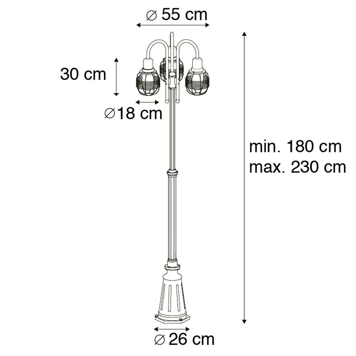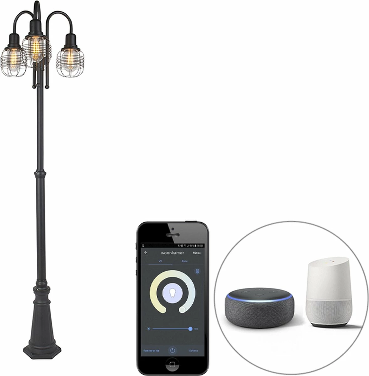 QAZQA Guardado – Lampe D’extérieur Smart à LED Rurale | Lampadaire Pour L’extérieur Avec WiFi – 3 Lumières – Ø 55 Cm – Zwart – Éclairage Extérieur