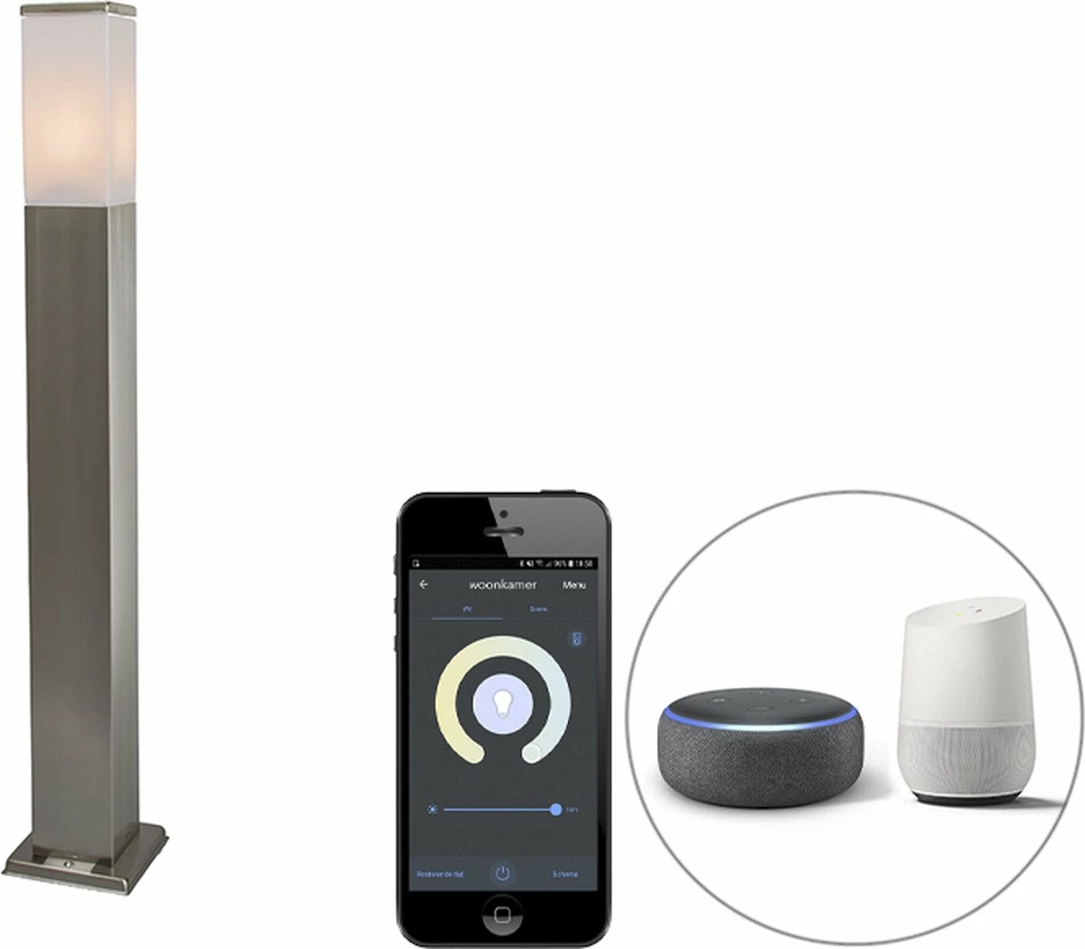 QAZQA Malios – Lampe D’extérieur LED Moderne Et Smart | Lampadaire Pour L’extérieur Avec WiFi – 1 Lumière – H 80 Cm – Acier – Éclairage Extérieur