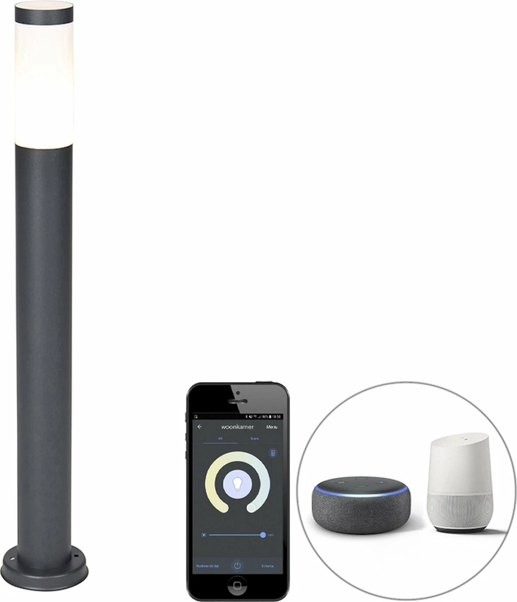 QAZQA Rox – Lampe D’extérieur LED Moderne Et Smart | Lampadaire Pour Extérieur Avec WiFi – 1 Lumière – H 80 Cm – Gris Foncé – Éclairage Extérieur
