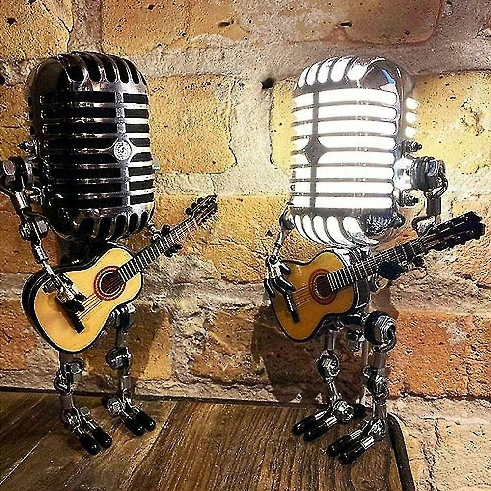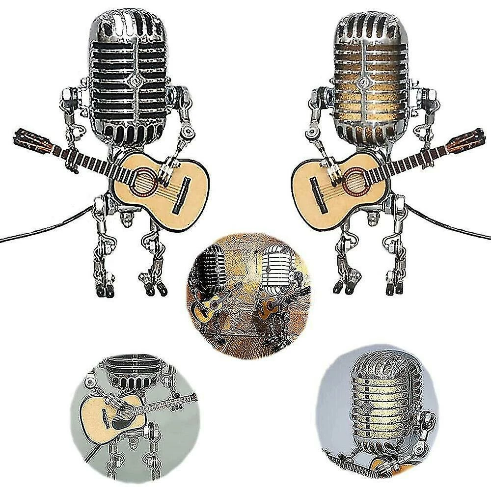 USB Retro Style Microphone Robot Light Holding Guitar With Light Retro Home Decor