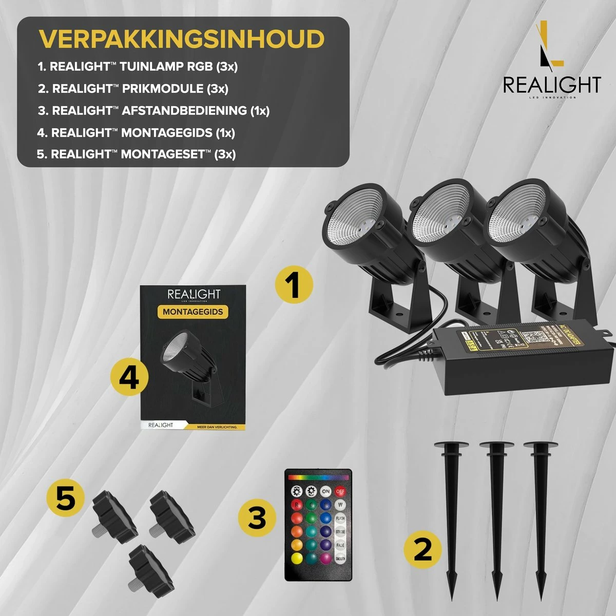 Choisissez l’ambiance ultime dans votre jardin, avec cet éclairage de jardin LED de Realight®ï¸. Ces lampes ne devraient manquer dans aucun jardin, elles créent une atmosphère et un confort et sont faciles à utiliser avec notre application et notre télécommande. Choisissez 1 des 16 millions de couleurs, pour une lumière froide ou chaude. De plus, vous pouvez également régler les couleurs au moyen d’une minuterie et les synchroniser avec votre musique préférée !