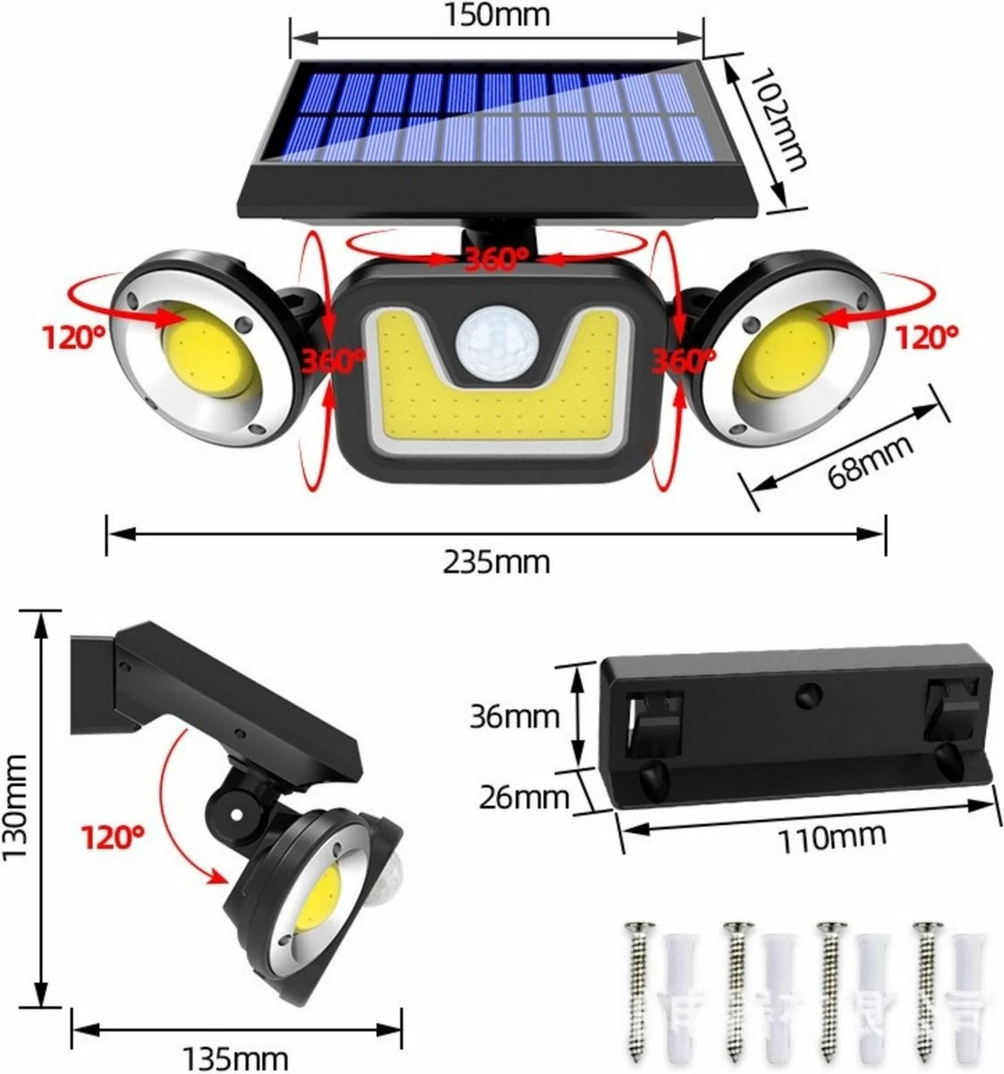 Une lampe d’extérieur à énergie solaire est très pratique. Vous n’êtes pas lié aux prises de courant. Accrochez la lampe avec quatre vis et le tour est joué ! La lampe contient une batterie de 1800 mAh qui dure 12 heures par charge. De plus, l’énergie solaire accumulée est utilisée efficacement grâce au capteur de mouvement.