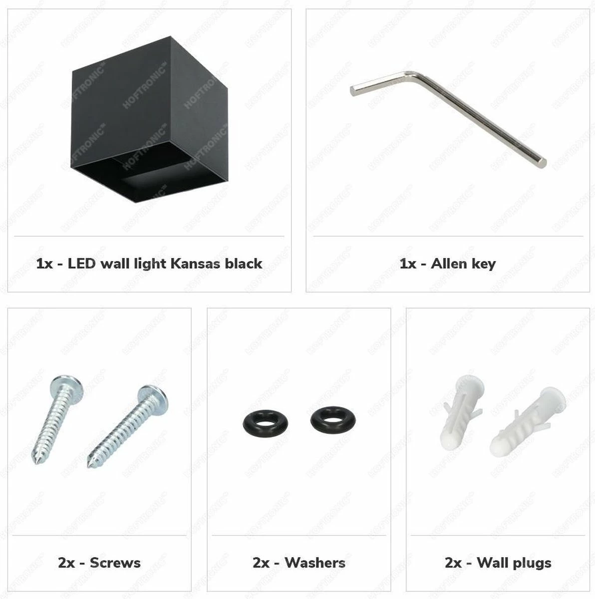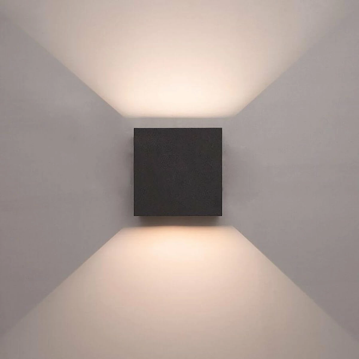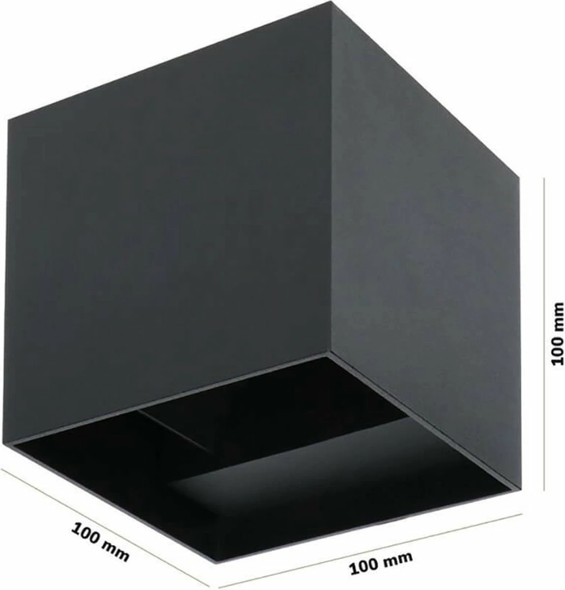 Applique murale Hoftronic LED Cube Kansas 6 Watt éclairée des deux côtés, IP54 Noir. Belle comme applique murale pour l’intérieur et l’extérieur.