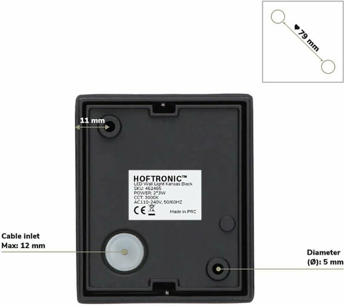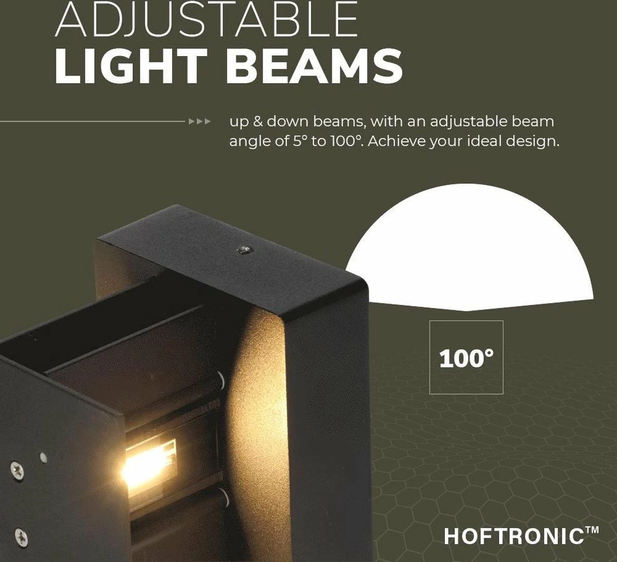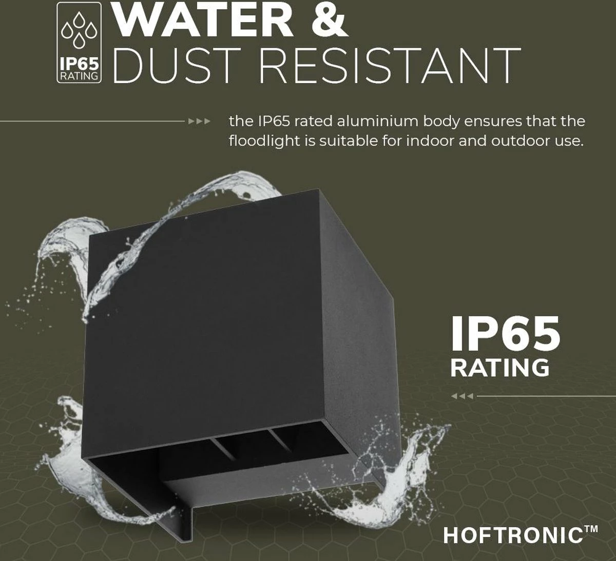 Applique murale Hoftronic LED Cube Kansas 6 Watt éclairée des deux côtés, IP54 Noir. Belle comme applique murale pour l’intérieur et l’extérieur.