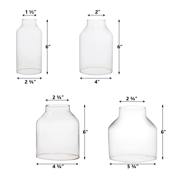 Set Of 4 Clear Milk Glass Hurricane Candle Holder Shade Chimney Tubes, H-6″ (Wholesale 6 SETS/Case)