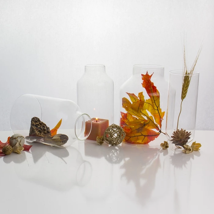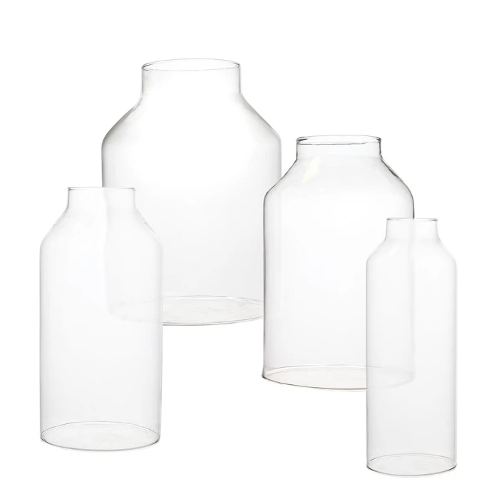 Add a touch of elegance with our almost milk shaped open ended glass hurricane to your candle display. This features a simplisctic form to place over candles and easy to remove, while still providing protection for open flames. The contemporary design of the hurricane candle holder gives an impressive display in your home and special events. It’s an astonishing bottomless shield to cover votive and pillar candles for open flame candles. No more dripping wax onto the side of the glass.