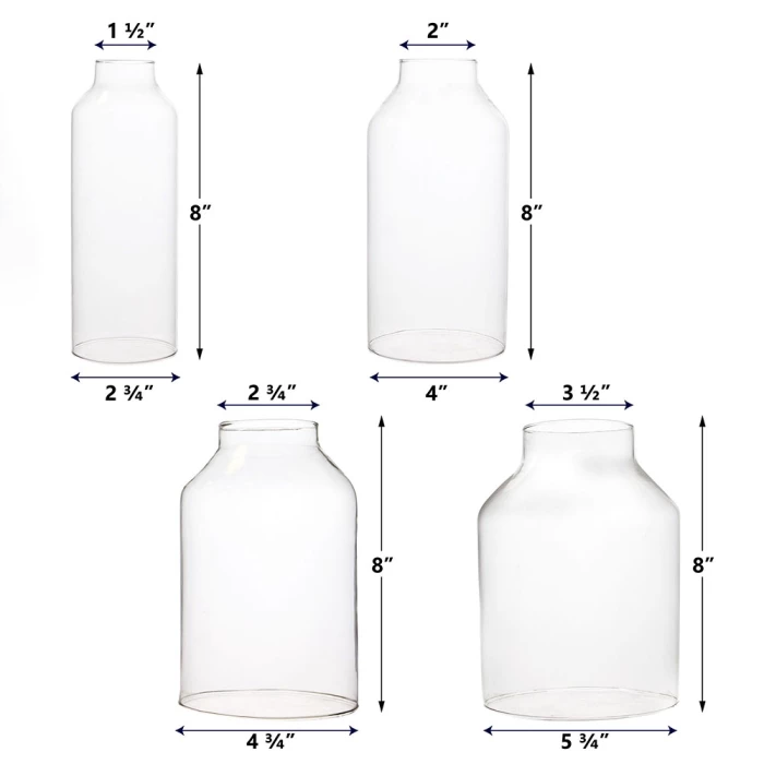Set Of 4 Clear Milk Glass Hurricane Candle Holder Shade Chimney Tubes, H-8″ (Wholesale 6 SETS/Case)