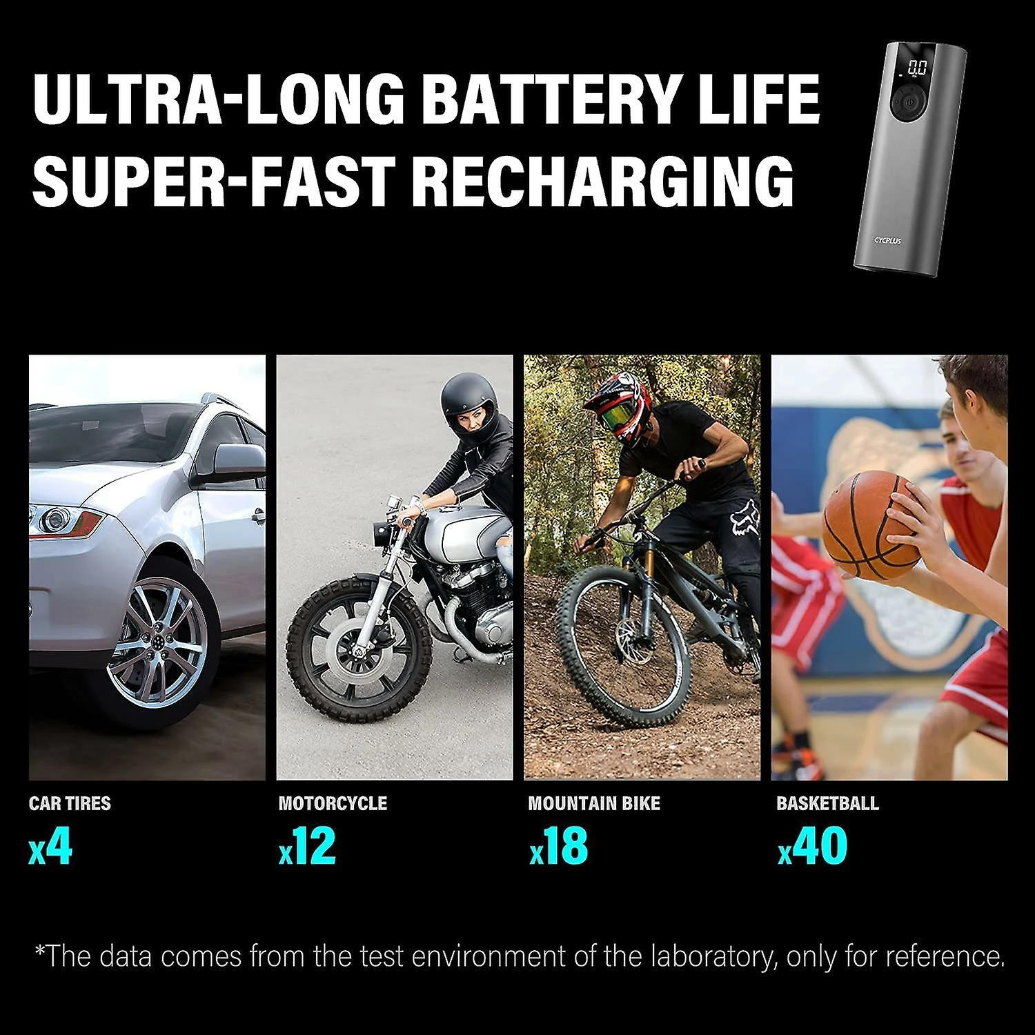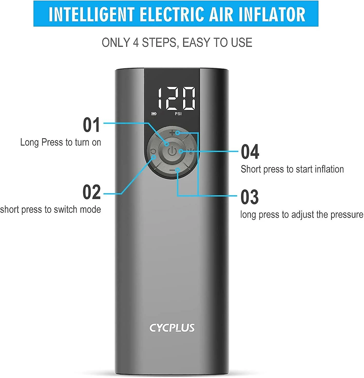 Battery Type C,150psiElectric bicycle pump, it only takes 2-3 minutes to inflate a bicycle tire. The longer battery life, the inflation speed is accelerated. The type-C connector of the rechargeable electric bicycle pump enables high speed charging.