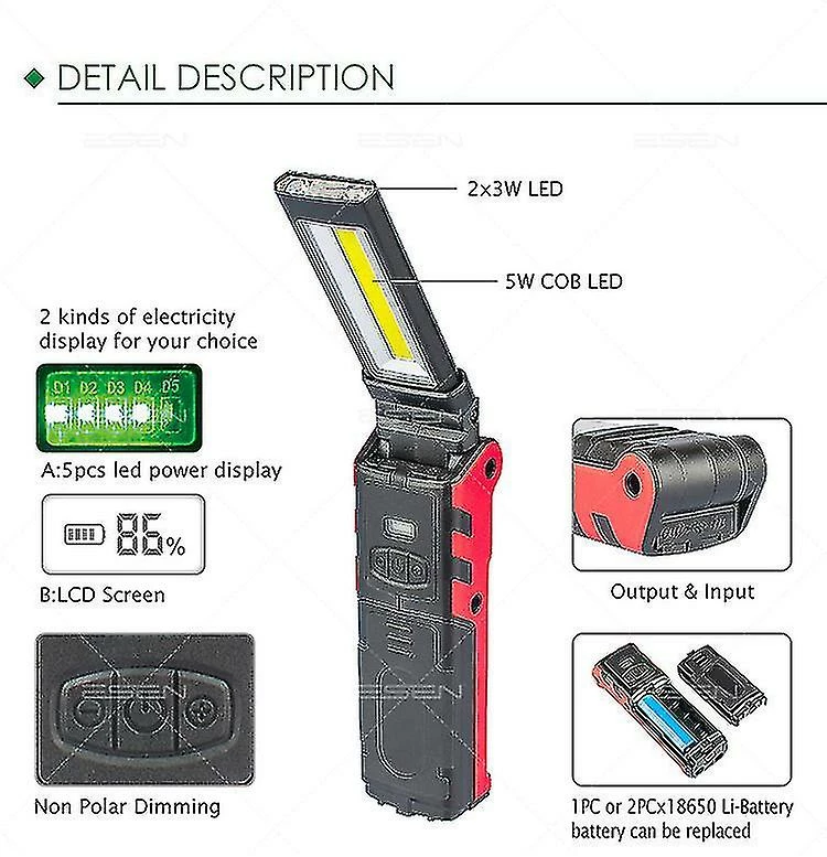 Unbranded 2022 Nouvelle Lampe De Travail Rechargeable USB, Torche De Lampe De Poche à épi, Inspecti Led