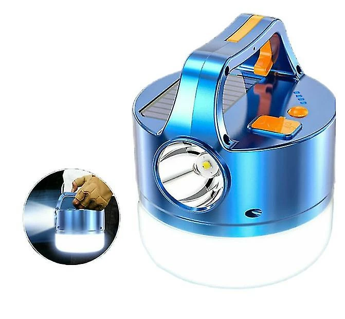 30W Solar LED Lantern Light USB Rechargeable Portable Flashlight Torch Outdoor1.Material: high quality ABS material, light weight and durable.2.Lamp beads: made of 20 LED lamp beads, provide you uniform light by constant current. Direct solar charging within 8-10 hours, provides 8-16 hours amazing light, can also use USB Smart Charging, 2 charging methods to choose from.3.Multifunction handle: it can be used as portable lamp, with focus on outdoor lighting, handle design, portable outdoor lighting, with its own universal hook, portable and durable.4.Power indicator: there are 25%/50%/75%/100% Four-speed power indicator lights to remind you to charge at any time. USB output for emergency charging of mobile phones. There are also remote control switches and lighting modes, which are very convenient and convenient.5.Suitable for: work, study, party, fishing, camping and other outdoor activities.Specification:Name: Solar LED camping lightColour: blueLight colour: white light (5000K)Type: with remote controlLight source: LEDPower: 30 WCharging method: Solar/USB chargingUsage Battery: built-in lithium batteryBattery capacity: 1200Loading time: 5-6hBattery life: 8 hLighting mode: 4 gears (strong light/medium light/low light/side light)Lighting angle: 120Maximum range: 200-500MWaterproof Grade: IPX4Size: 12*10*4cmPackage Included:1 x Camping Light1 x Charging cable1x remote controlTips:1.Due to manual measurement, please accept the error of 1-3 cm.2.Due to the difference of light and screen, the color of the product may be slightly different than in the picture.