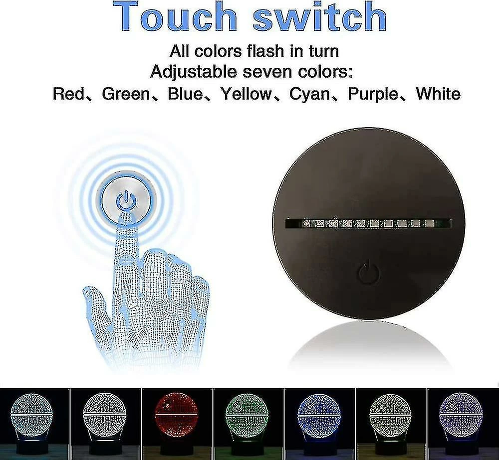 Unbranded 3d Illusion Night Light Lampe De Bureau, 7 Couleurs Auto Changement Progressif USB Alimenté Led Lumières Avec Interrupteur Tactile Pour Enfants Cadeaux Décoration De La Maison