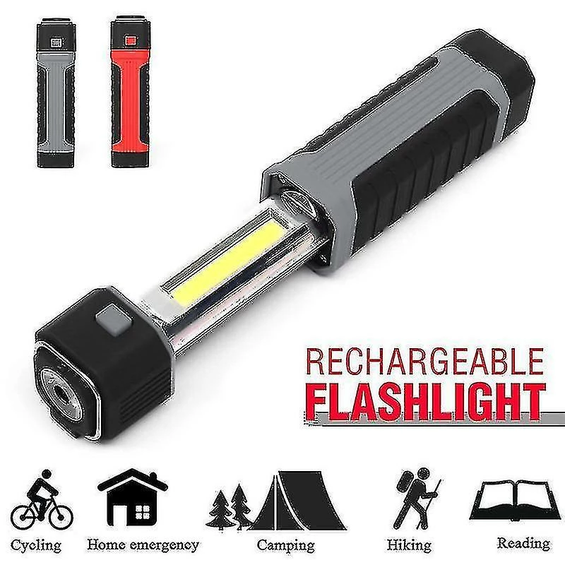 3W DC6V Retractable COB LED Work Light Flashlight Magnetic Emergency Lamp Outdoor Camping LanternSpecifications:MaterialPlastic, MetalColorGrey / RedVoltageDC6VPower1W+3W Light TypeCOBPower Supply4*AAA battery(Not included)Size14.5 3.5cm / 5.7 1.4inch WeightApprox.130gFeatures:Plastic shell wrapped in a layer of carbon black, feel good, non-slip.Come with a magnet and hook, Folding design, easy to use in a small space inside.LED bulbs, green energy saving, and environmental protection, the use of longer time. Package Included:1 Camping Light