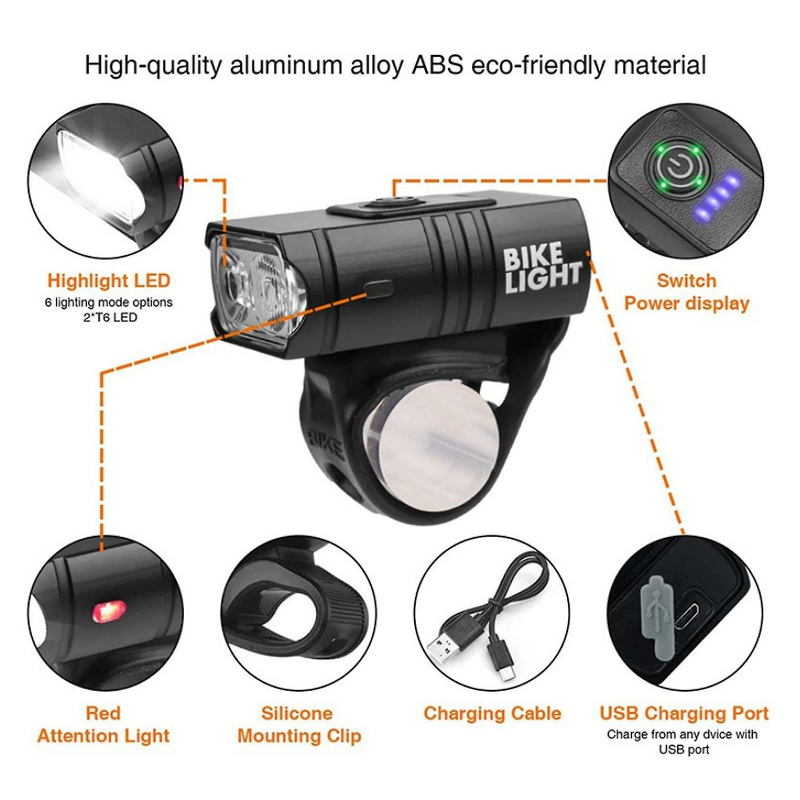 1 Piece Bike Light with USB Cable
