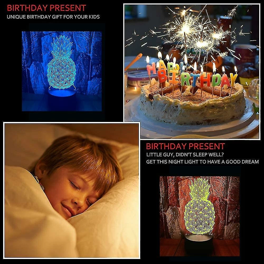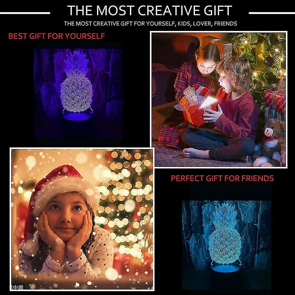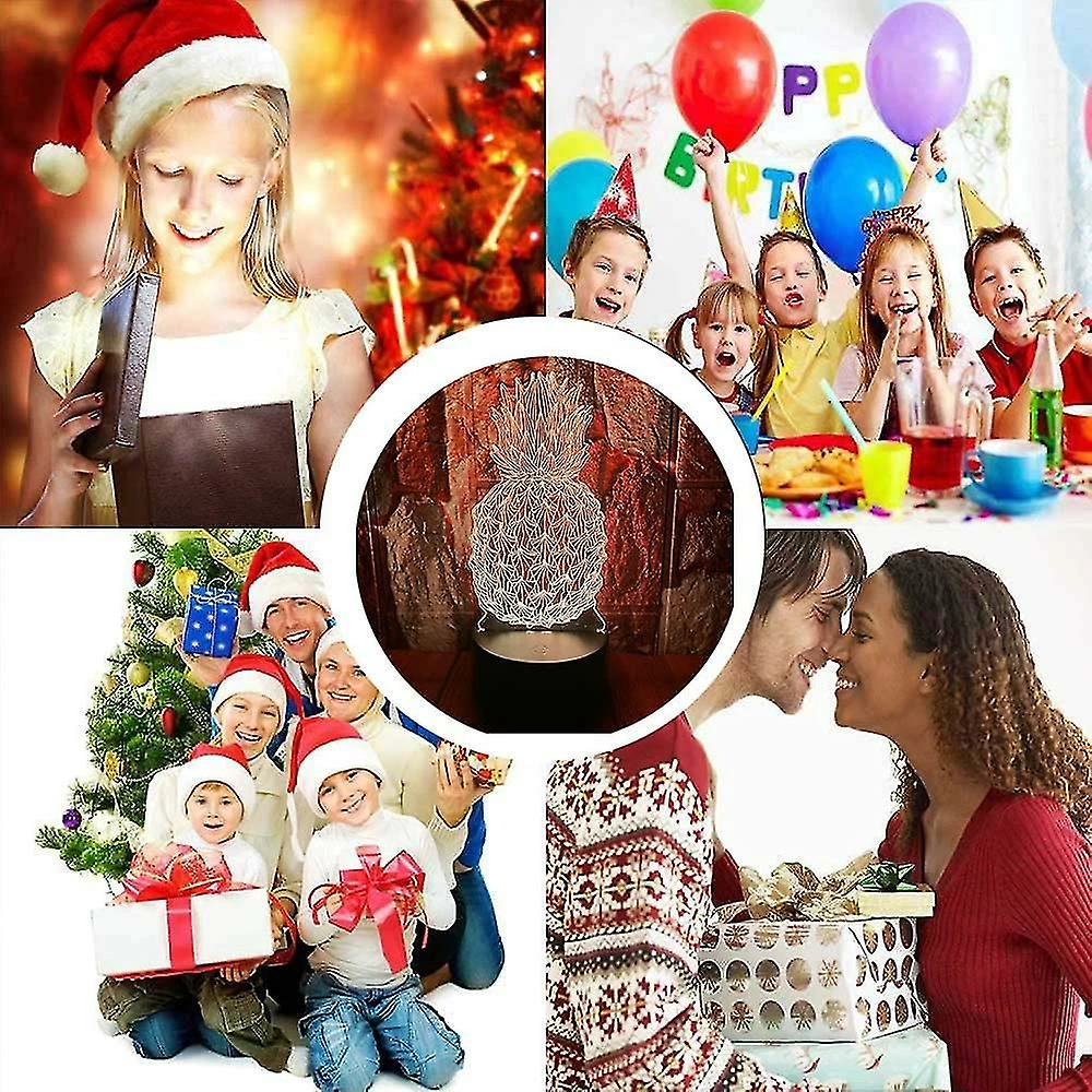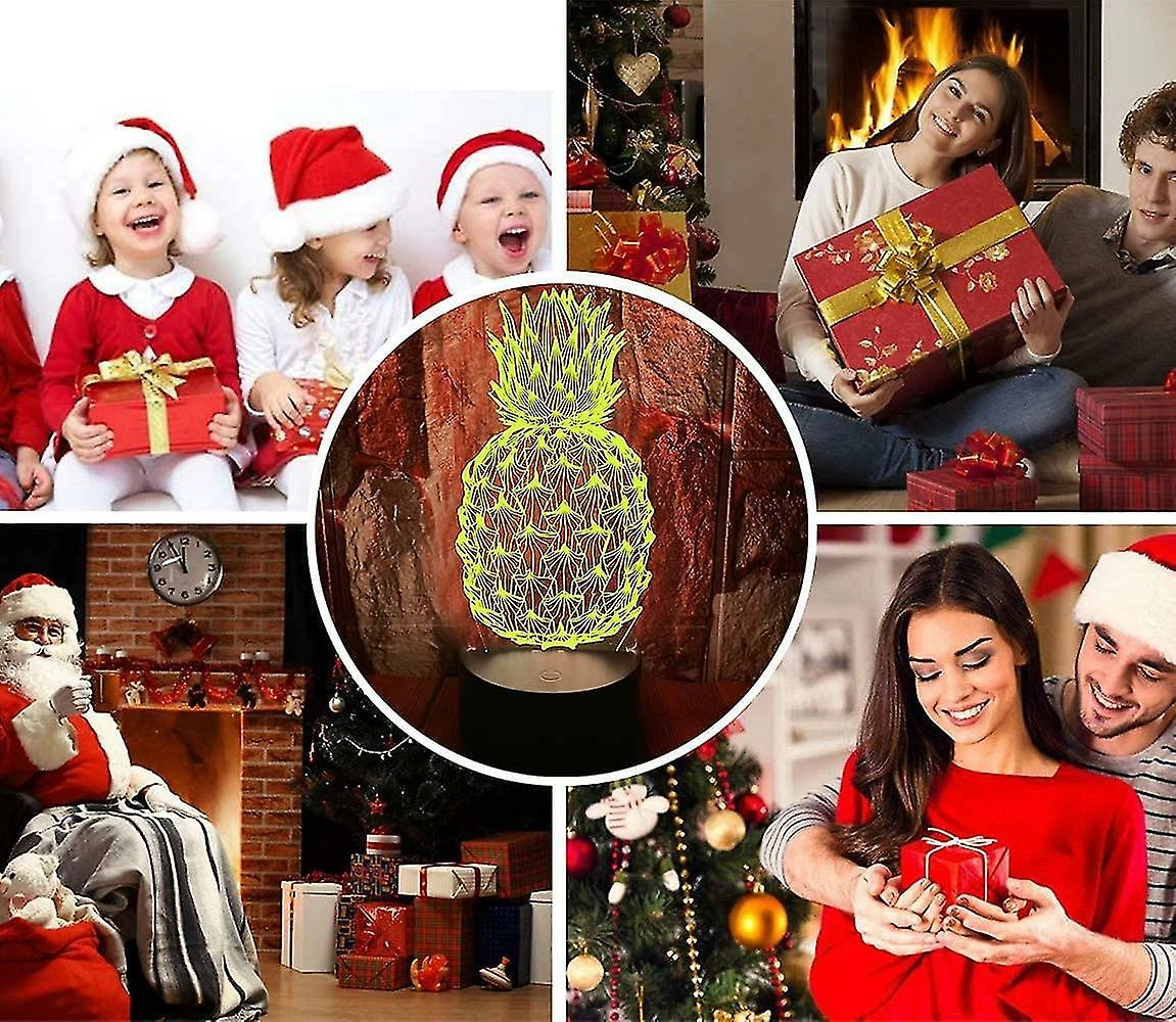 Unbranded Ananas 3d Led Illusion D’Optique Chambre Décoration Lampe De Table Avec Télécommande 7 Couleurs Changement Dimmable Acrylique VeilleUse Anniversaire Cadeau De Noël Pour