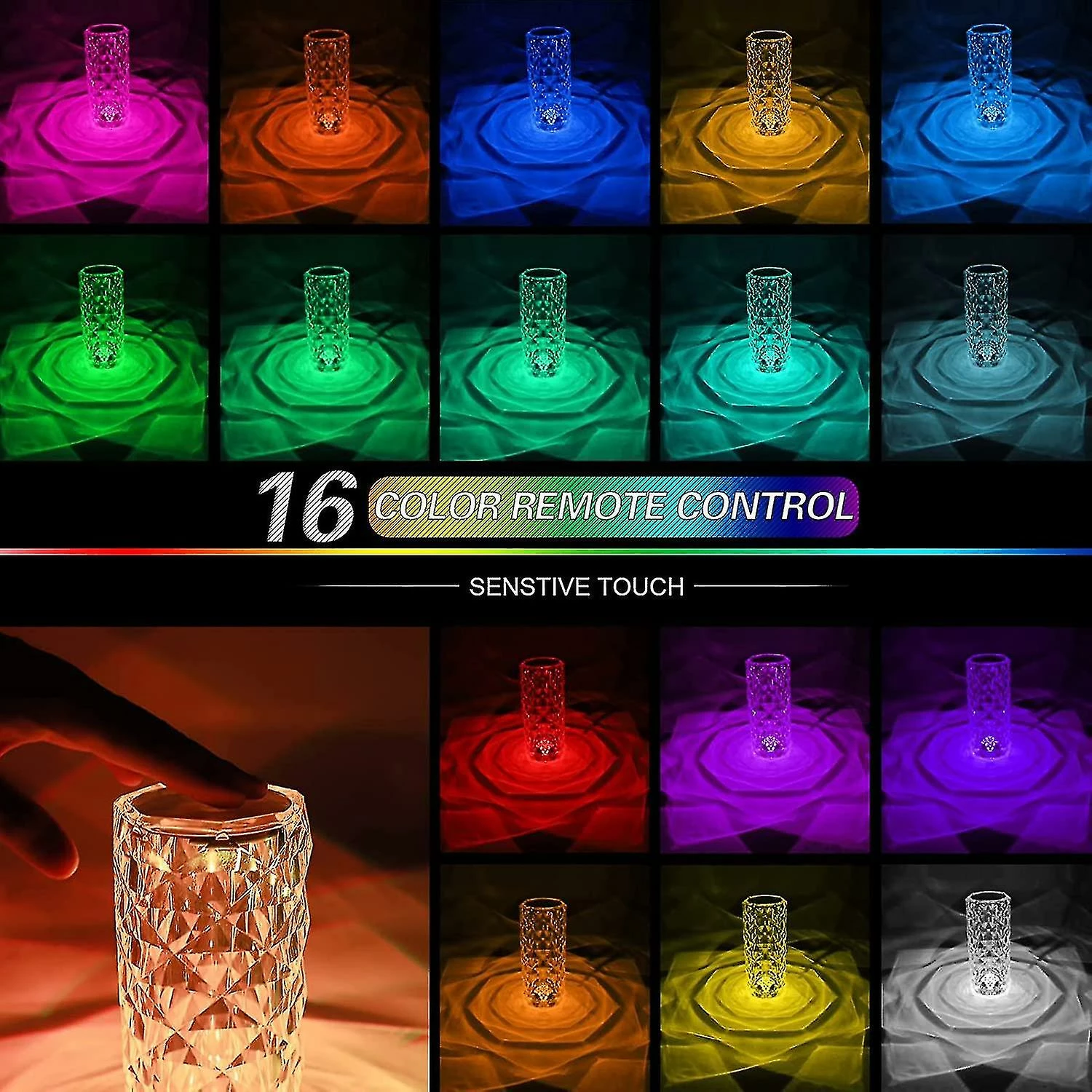 Unbranded Attoe Crystal Touch Lampe, Lampe De Chevet Rose, Lampe De Nuit De Contrôle De Capteur Avec Charge USB