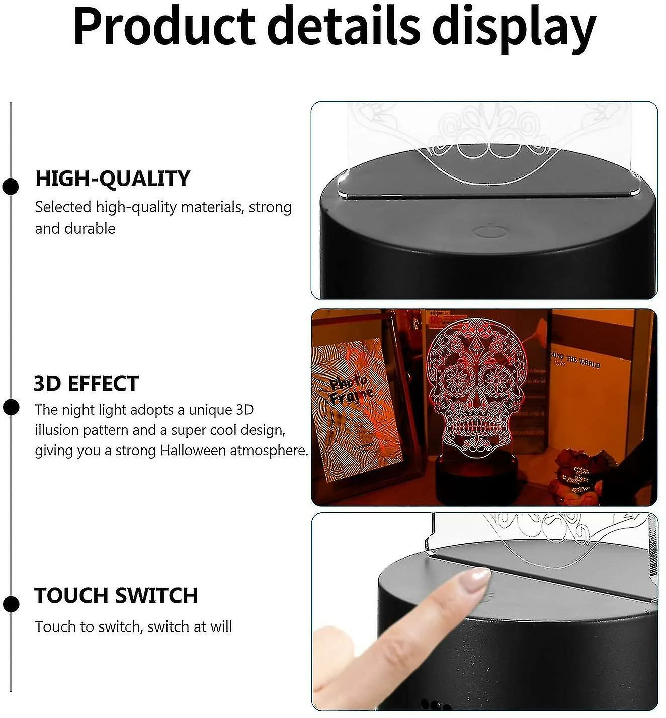 Unbranded Attoe Décoratif Effrayant Crâne 3d Illusion Lampe Led Halloween Nuit Ligh