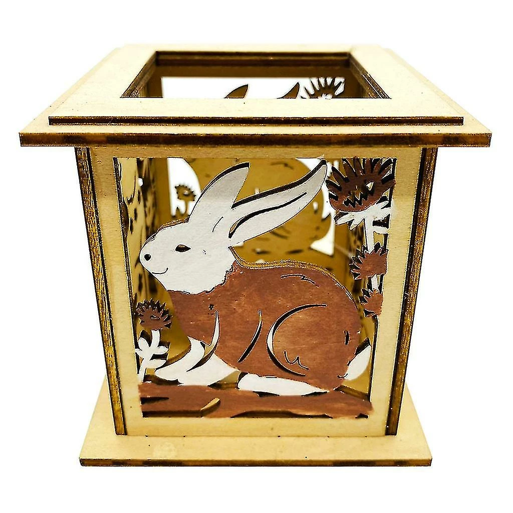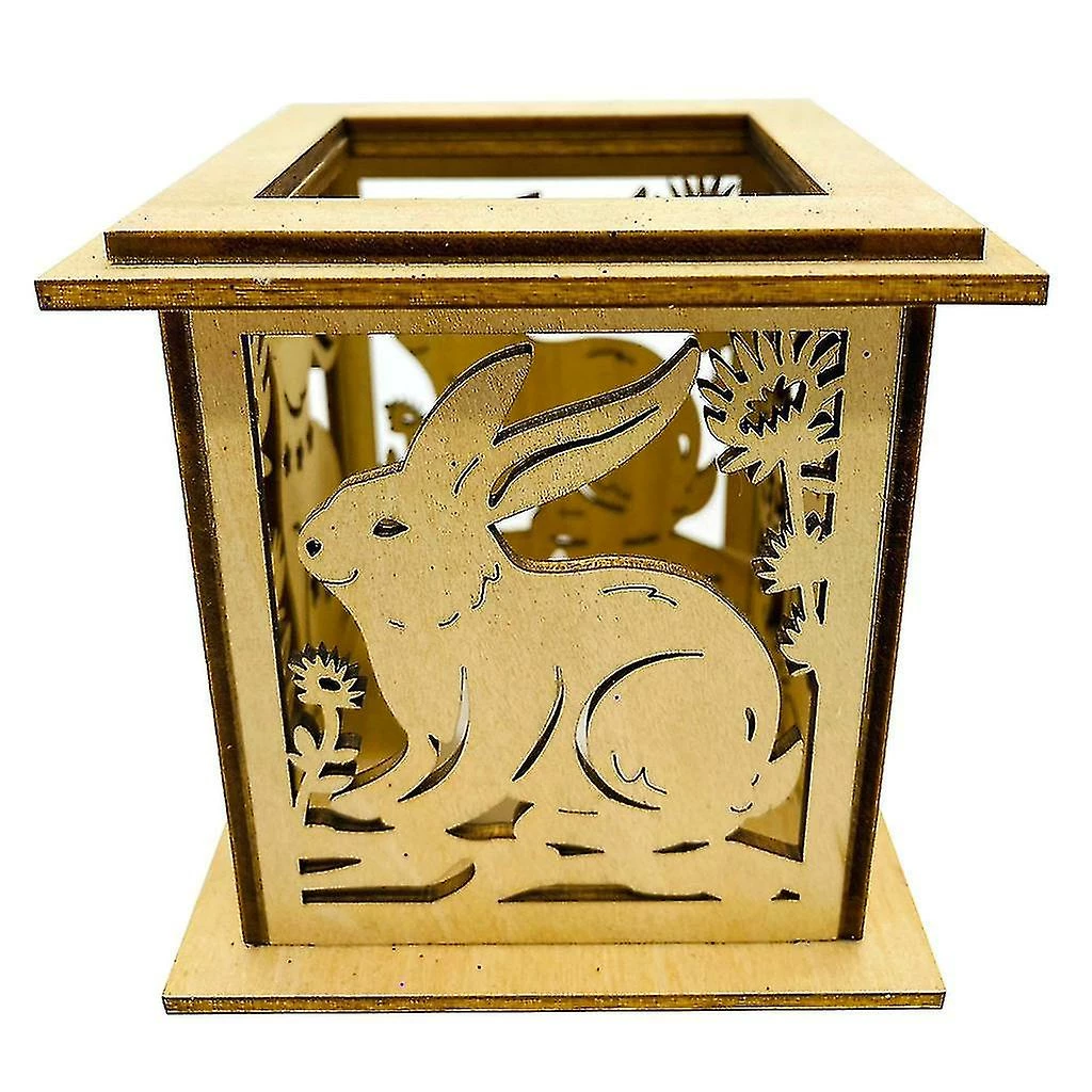Unbranded Bois Pâques Lapin Lapin Boîte Décoration Led Lampe Nuit Lumière Mariage Ornement