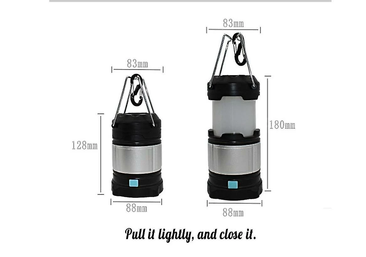 Camping LIght USB Rechargeable Collapsible Outdoor Lantern Lighting 18650 Portable Hand Lamp Camping Hiking Light|Portable LanternsProduct Features:Light Bulb Type:LEDSwitch Mode:5Feature:RechargeableApplication:Camping/HikingBody Color:BlackBody Material:ABS,AluminumMaximum Brightness (lumens):2000Runtime (Hr.):5Dimension:128x88x83mm(turn of)128x88x180(turn on)Net Weight(kg):0.32Light Color:WhitePlug Type:USB labelPackage Contents:1*Tent Light1*Charger