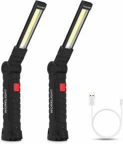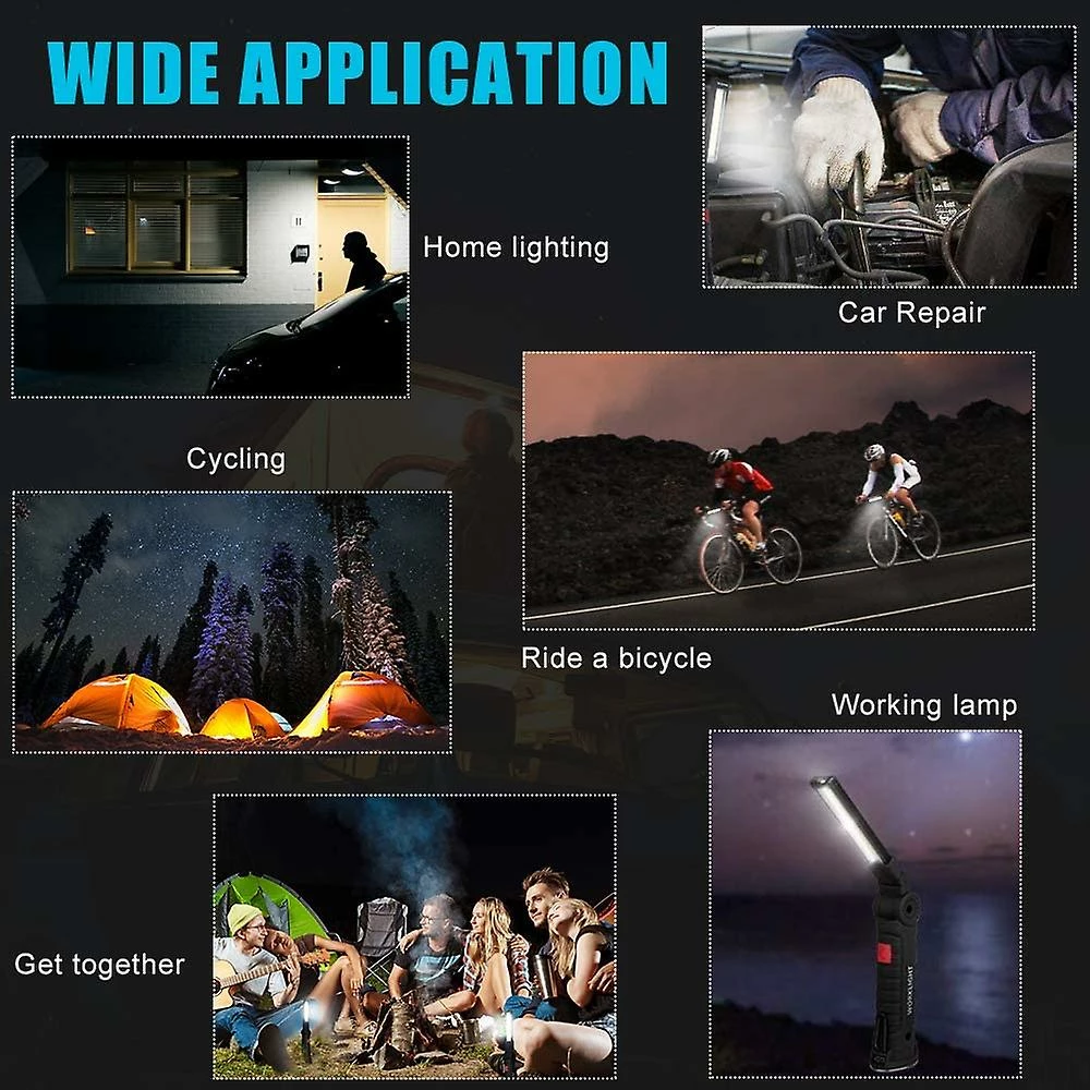 Wide Application: This COB rechargeable work lights with magnetic base 360 rotate and 5 modes bright LED flashlight inspection light is the best choice for cycling power outages, car repair, home lighting, fishing, camping, hiking, power outages, walking at night,emergency, etc.