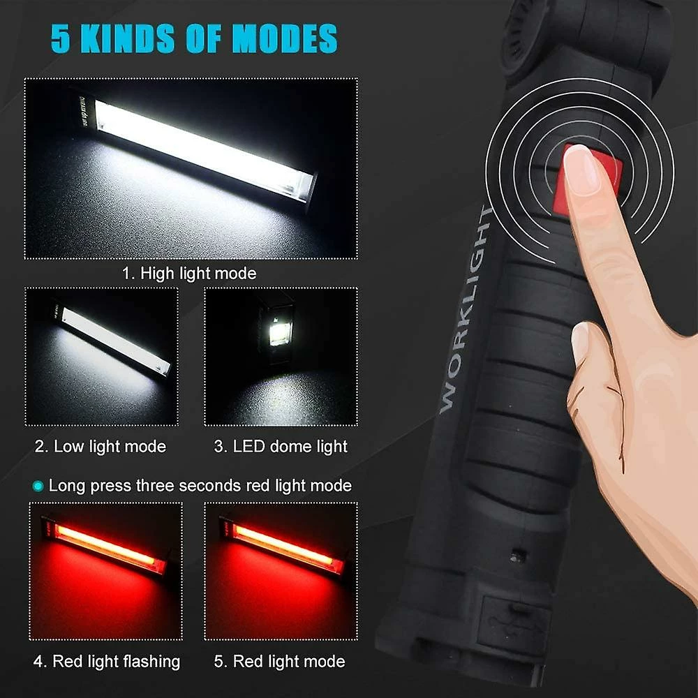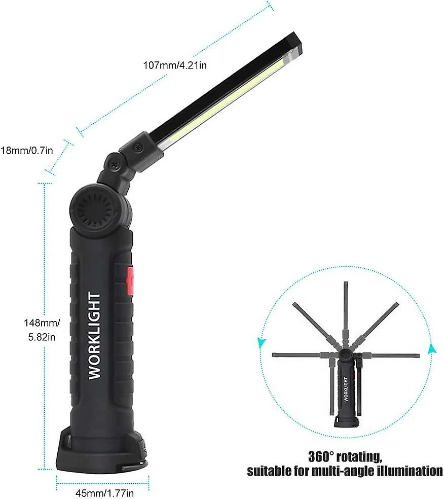 Unbranded Cob Led Lampe De Travail, Taille L, Torche Rechargeable USB Avec Base Magnétique, 360rotate Et 5 Modes D’éclairage Portable Inspection Work Light Handy Lampe De Poche,