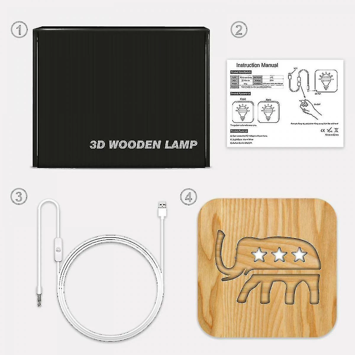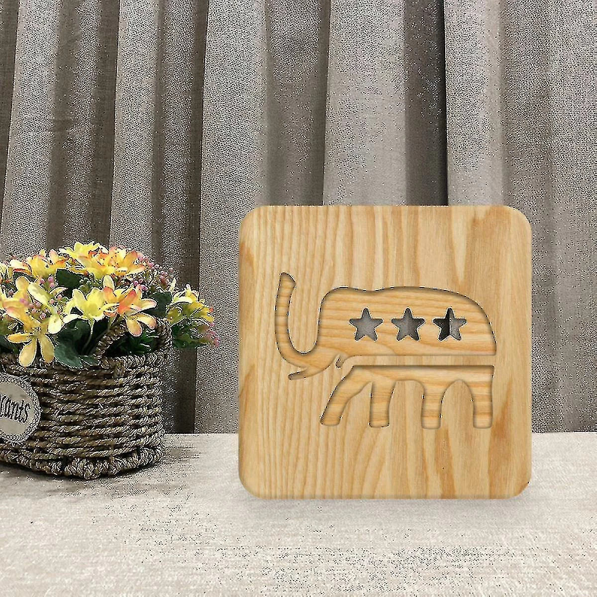 Unbranded Elephant Night Light Pour Enfants Lampe En Bois 3d Créative Lumières En Bois Lumières Décoratives Simples 3D Sculpture Sur Bois Motif Led Veilleuse Pour Bureau.