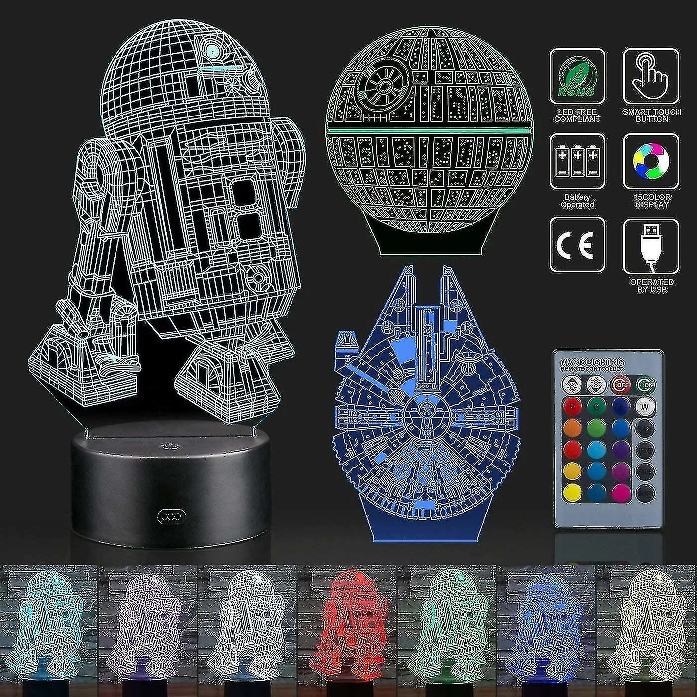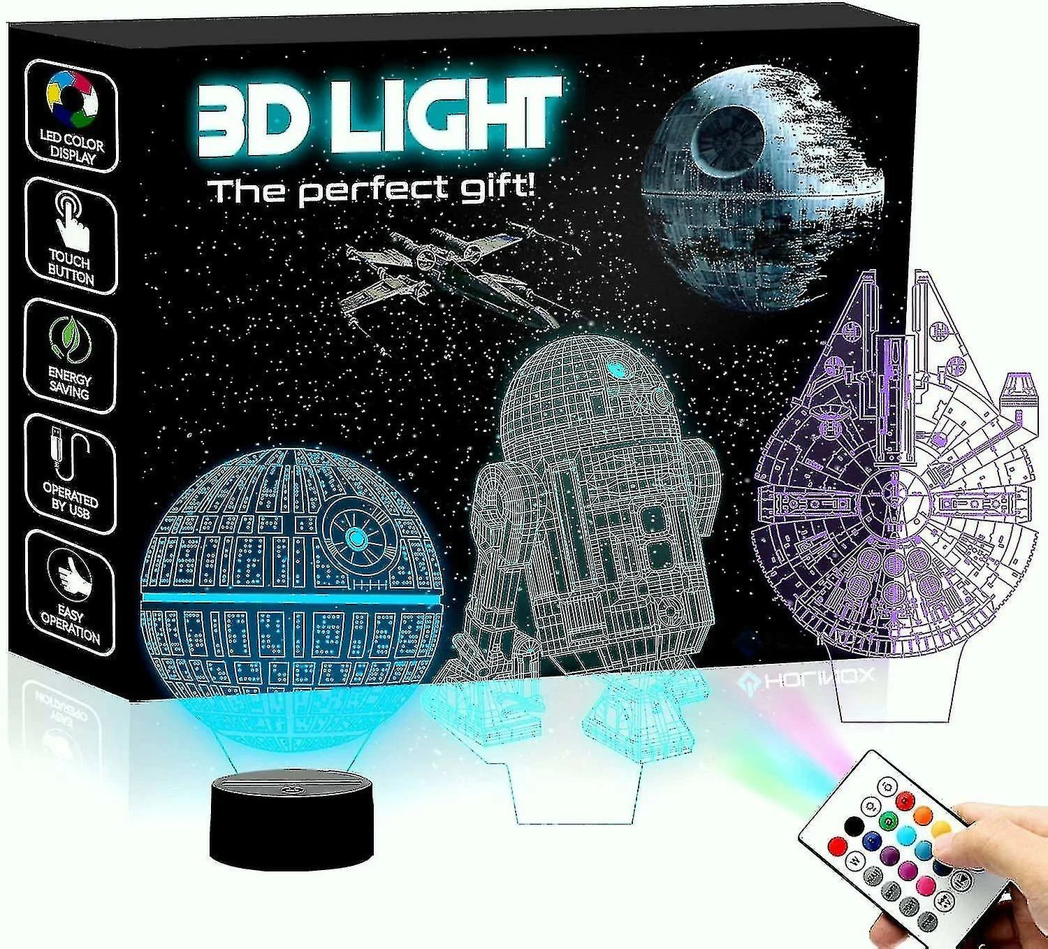 Unbranded Ensemble De 3 Veilleuses – Lampe De Nuit 3d Avec Trois Motifs Télécommande 16 Couleurs LED Dimmables, Cadeaux De Noël, Décoration De Chambre Compatible Avec