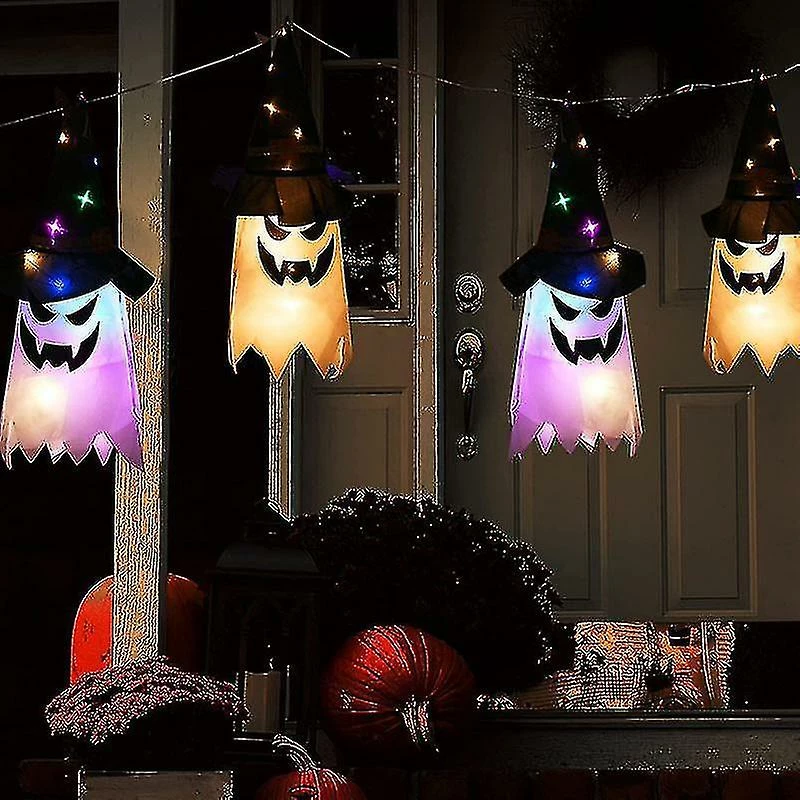 Unbranded Hanging Ghost Led Lights Set Halloween Décoration Ghost Led Lights Glowing Horror Props Ghost Witch Hat Lampe Suspendue