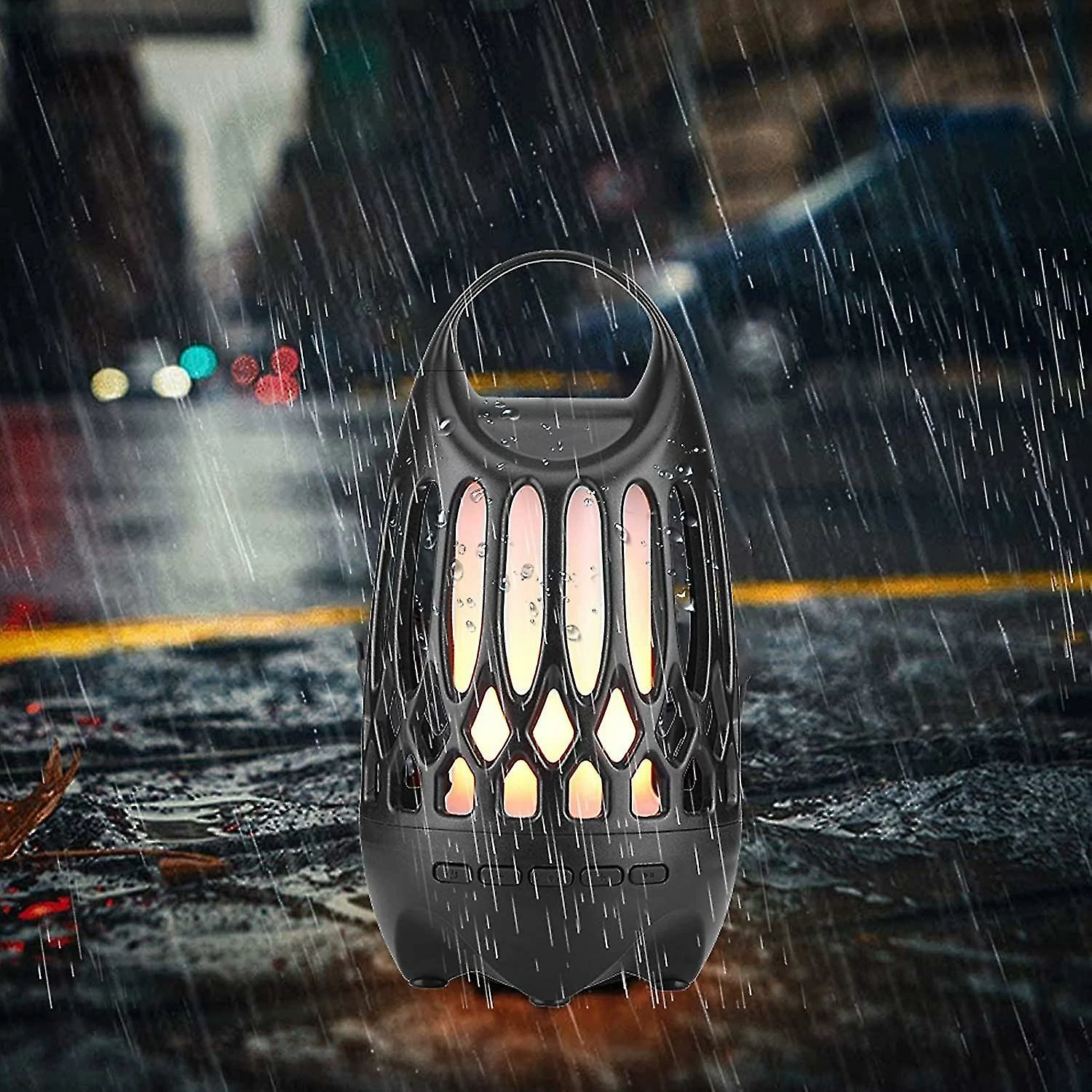 Flame wireless speaker: The upgraded version of the flame speaker has 96 LEDs. All 96 LEDs flash together with the warm yellow light to form an amazing flame, imitating extremely realistic and natural dancing flames, combined with powerful audio functions, to create a romantic atmosphere. you.$Bluetooth speaker upgrade version 3 in 1 flame atmosphere speaker: portable desktop speaker + LED flashlight + chandelier. Provide a perfect campfire atmosphere for your yard, garden, party, barbecue and camping.$Unique wireless speaker design: 8 hours of play time + built-in new upgraded 2000mA rechargeable battery + 10m wireless control + Bluetooth pair 2 provides excellent stereo + Bluetooth 5.0 (easy and fast connection) + IP65 waterproof outdoor speaker$Bluetooth speakers provide excellent stereo sound: (warm reminder) Our products are IP65 waterproof, please do not immerse them in water, so they should not be exposed to rain for a long time. Built-in 5W driver with subwoofer resonator, whether you connect it with iPhone, iPad, Android or computer, our flame light speakers can bring clear and true sound. One shows the sound and stereo, and the other guarantees excellent stereo.$We believe you will fall in love with waterproof Bluetooth speakers. Great gifts for birthdays, holidays, parties, invitations, gardens, and Christmas are also great gifts for yourself, lovers, family, friends, classmates, and colleagues.
