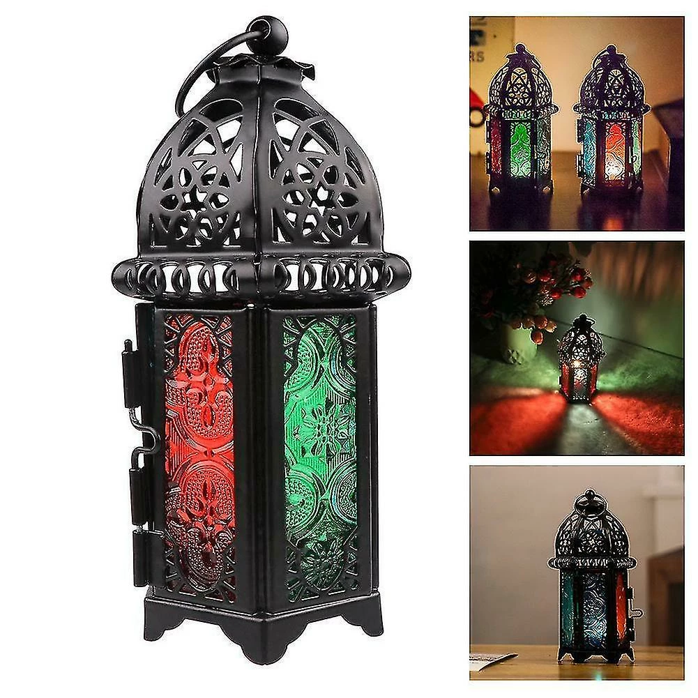 Unbranded Jinxiu Moroccan Lantern Lampe à Thé Lampe à Bougie Pendu Maison Décor Jardin. (noir) (1pcs)