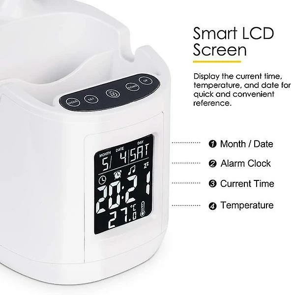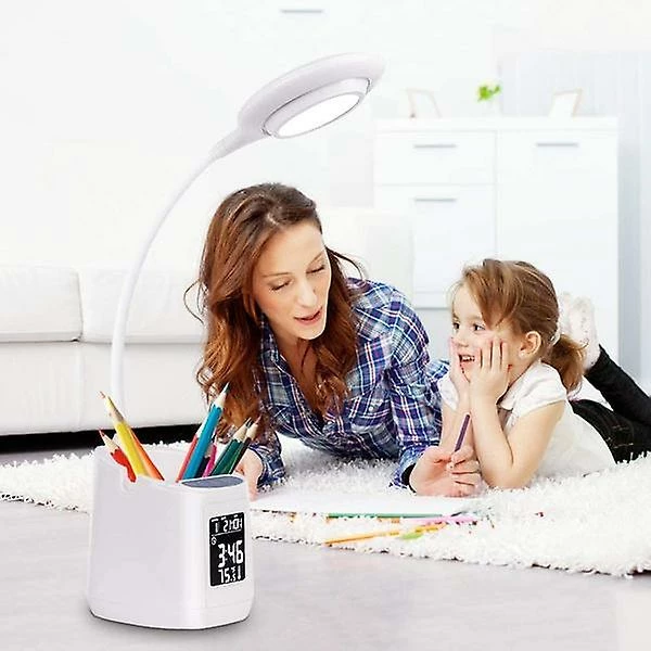7 en 1 Multifonction – Lampe de bureau LED, porte-stylo, support de téléphone, écran LCD intelligent affichages heure, réveil, date et température.