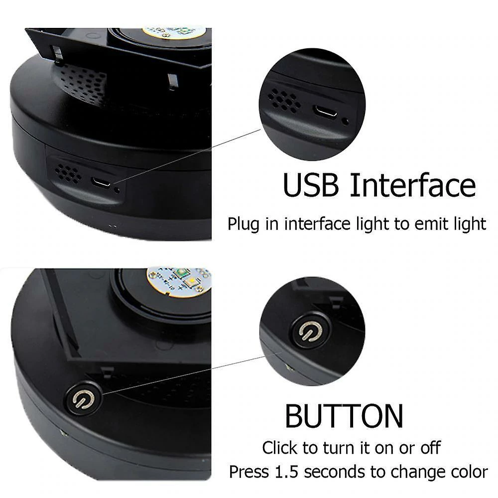 3.REMOTE OR BUTTON CONTROL: Press the button to turn on and press 1.5s to change color .Also you can use remote control. What’s more ,with remote control night lamp can rotate.