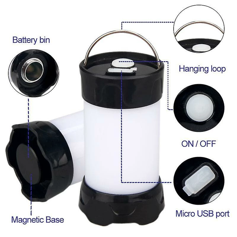 5 Modes LED Portable Lantern Collapsible Tent Lamp Magnetic Flashlight Waterproof Outdoor Camping Fishing Light Use 18650|Portable Lanterns(Black)