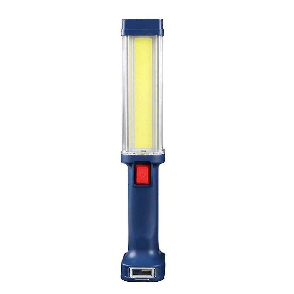 Super Bright COB Light: A 20W max,700 Lumens COB LED Light built-in two rechargeable 18650 Li-ion battery and with USB port to charge the mobile or other devices.2 Modes Function: Two different modes help you in many situation,High brightness and Low Brightness.Press the switch on button to turn on the light, and then press the button to switch among 2 modes.Hook Design And Magnet Adsorption: Built-in super-strong magnet, which can be attached to metal surfaces such as car bodies to provide temporary lighting. The hook design allows the lamp to be hung on objects such as tents that cannot be absorbed. Adapt to various difficult environments and make work emergency more convenient.Two meter fall resistant design: Made of sturdy and durable aluminum alloy material, no functional problems under 6.6ft(2m) drop test.Portability Make Wild Applications:Cordless &rechargeable,daily waterproof, make our lamp great for home, outdoor, Car repair, Camping, Hunting, Fishing, working on electronics, emergency roadside repairs, or multipurpose work etc.Light color: WhiteBulb: COB/32 SMDcolour: blueMaterial: ABS + aluminum alloySize: 305x50x70mmPackage Contents:1 x Rechargeable work light1 x USB charging cableOnly the above package content, other products are not included.Note: Light shooting and different displays may cause the color of the item in the picture a little different from the real thing. The measurement allowed error is +/- 1-3cm.