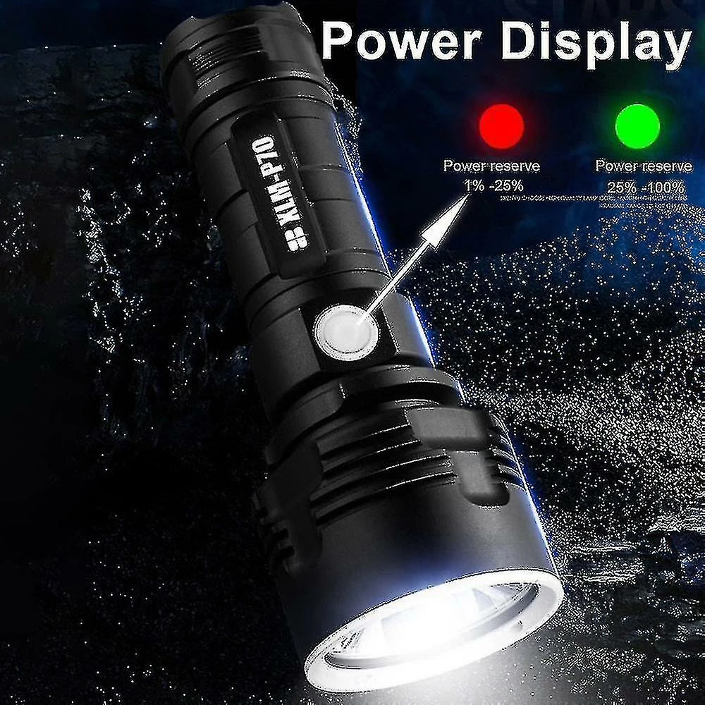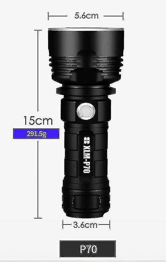 Caractéristiques de Camping Lights & Lanterns: LED Lampe de poche High Lumens XLM P70 Le plus puissant USB sans batterie rechargeable étanche Ultra Bright Lantern Camping Hand Lamp| Outils d’extérieur DE L’ARTICLE * 1.Boîtier en aluminium et conception antidérapante, se sentir plus à l’aise. La conception spéciale du réflecteur améliore le rendement lumineux en intensité et en distance. * Modes 2.3 avec un bouton: haute lumière, faible luminosité, lumière SOS pour votre choix. * 3.Vous pouvez également l’utiliser comme alimentation CC de votre téléphone ou autre appareil électronique. * 4.Il y a un marteau de sécurité sur la queue, qui peut être utilisé pour briser la vitre de la voiture en détresse. * 5.Venez avec une longe qui est très pratique pour vous d’emporter avec vous partout. * 6.Résistant à l’eau, il peut être utilisé les jours de pluie, mais ne peut pas dans l’eau * 7.Largement utilisé dans les activités de plein air telles que l’escalade, le camping, la randonnée, l’exploration forestière, ou utilisé à la maison comme réparation ou recherche de petites choses. Spécification: Matériel: Alliage d’aluminium Modèle de perles LED: L2 / P70 Puissance: P70-50W Couleur de l’article: Noir Couleur émettrice: Lumière blanche Interrupteur: Push Switch Mode d’éclairage: 3 modes (SOS haut-bas) Zoomable: Mise au point réglable Batterie: 1×26650 batterie (non incluse) Mode de charge: Charge USB Taille: P70 15×5.6×3.6 cm Poids net: 260g Le paquet comprend: 1 x lampe de poche LED 1 x câble de charge USB