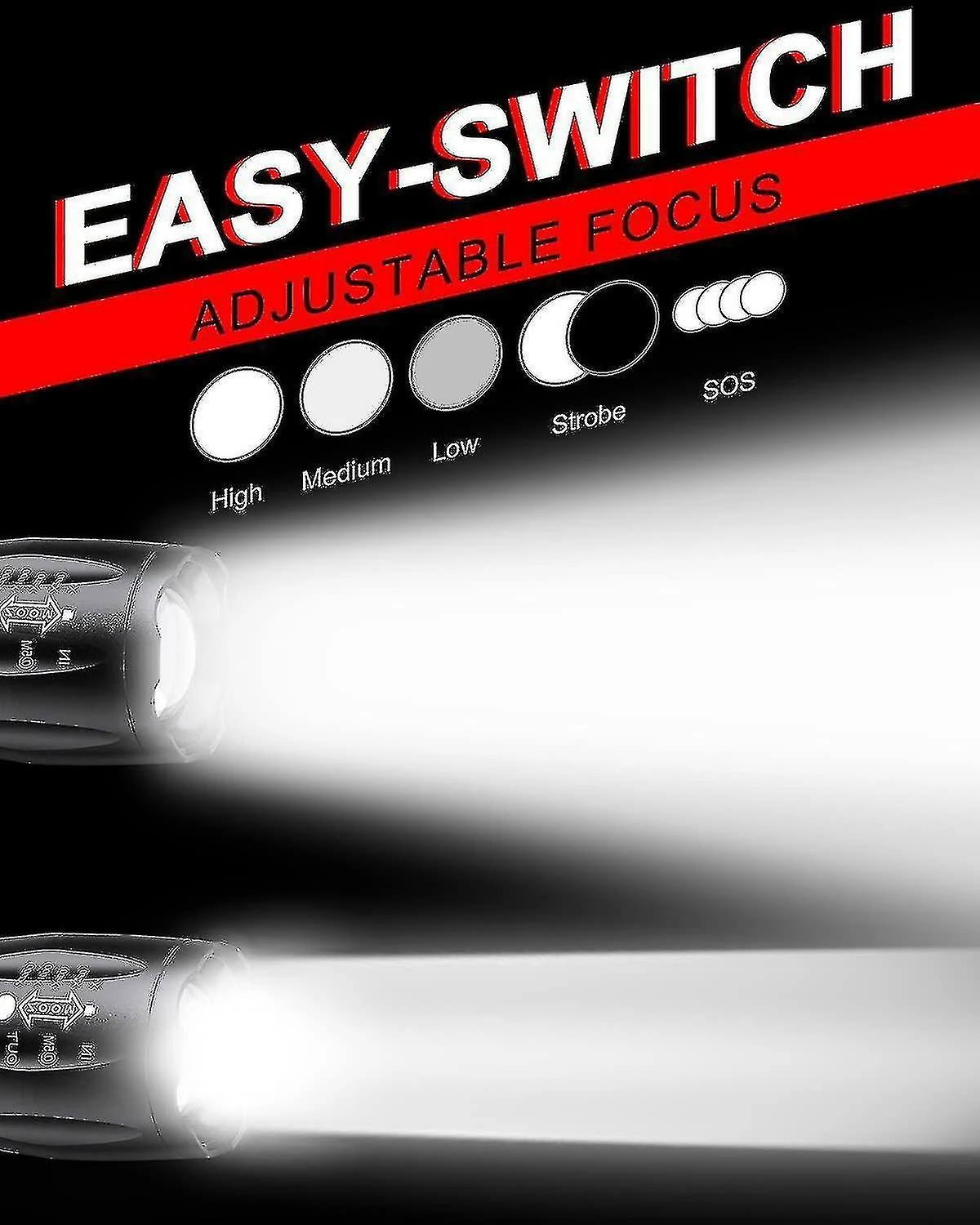 Tactical Flashlights High Lumens [2 Pack] – Led FlashlightThe product is shipped based on the color or size of the main image of the product page.Ultra Bright – Extremely powerful bright 2000 lumen tactical flashlights. LED bulb producing an intense beam of bright light up to 656ft/200m. High quality of 50,000 hours working life.Zoom Adjustable & Multiple Modes – This military led flashlight allows you to select focus between spot and flood beams. You are able to make the field of view very wide or down to just the spot in front of you. Adjustable focus with 5 modes: High, Medium, Low, Strobe, SOS/Emergency.Weather, Water, & Shock Resistant – Made of high quality aircraft grade alloy, premium type 3 hard-anodized anti-abrasive coating. Anti-slip handle designed for rough handling, Tactical flashlight is perfect for use in the rain, snow or emergency situations.Heavy Duty – The top pocket LED flashlight is used for many situations, outdoor activities, camping, hiking, hunting, fishing, home use, power outages, targeted searches, military and as a powerful emergency light.Widely Use – Easy to carry with you as a backup and is small enough to fit in your pocket, handbag, drawer, or car compartment. Takes 3 standard AAA (Batteries are not included).
