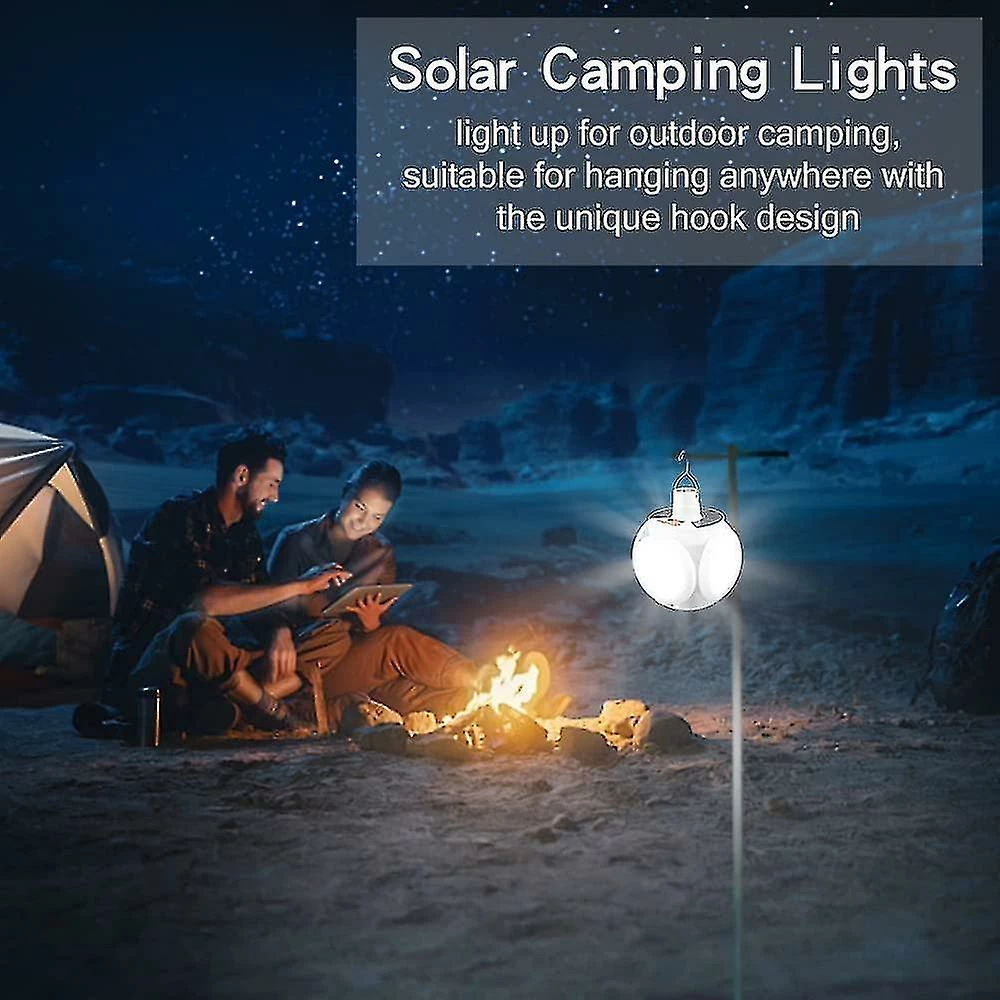 [Ampoule de football pliante améliorée]: Notre lampe de camping a un design unique de forme de football avec 45 perles LED, apportant une lumière super brillante. Avec 4 panneaux d’éclairage pliables, les lampes de camping solaires peuvent éclairer 360 degrés d’obscurité.