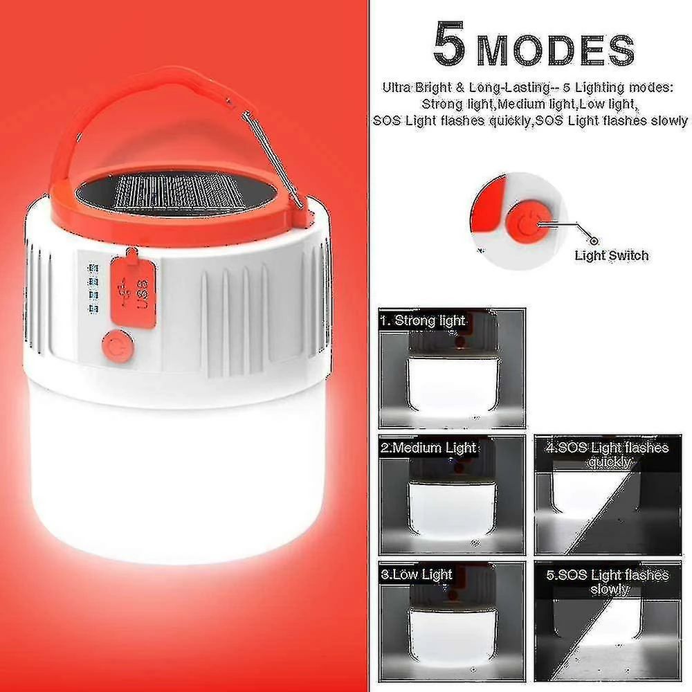 Rechargeable Led Camping Solar/usb Portable Lamp With Remote , proof Ip45 0 MahThe product is shipped based on the color or size of the main image of the product page.Solar and USB charging The LED tent light has a built-in 2000mAh 18650 which can be charged via USB and solar power. charging with solar energy, the first indicator light will light up.5 light modes light, medium light, low light, fast flashing, SOS light, slow flashing, SOS light, adapts to any situation when you are outside.Remote control Remote control camping lantern with remote control to turn on / off, light and free mode up to 10 m. You only need a remote control to open or close, you don’t need to get up or climb a ladder.Hook design With a hidden hook on the top, it is ideal for hanging in a tent after dark. And you can hang them on a backpack when you don’t need a lamp. for outdoor lighting camping lights for tents, camping, hiking, biking, walking, music festivals, emergencies, power outages. and charging solar lantern. functional and practical camping light that integrates emergency lighting and charging of mobile devices. and portable, waterproof and dustproof, easy to use.Widely used for camping, mountaineering, fishing, adventure, emergency lighting, cell phone or electronic products.Built-in 18650 .Built-in rechargeable 18650 batteries, it is also a power bank with fast charging USB port which can quickly charge your phone, camera, tablet and devices when you are outdoors or in emergency situation.42 LED beads.High brightness LED lamp beads with multicore iron chip and brightness up to 300W, and transparent PC shade for 306 camping light. display. -time 4-level display, dazzling light is clear at a glance. hook. less steel hook and built-in , cordless use, bright enough anywhere you hang it. the hook is not needed, put it down to it.Charge mode:Several charging modes to choose from. USB charging and solar power provide continuous power.