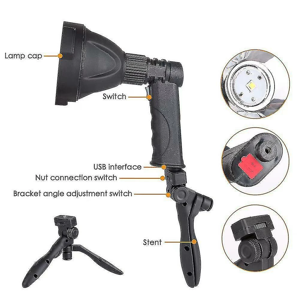 Unbranded Led Hand Held Spotlight Usb Rechargeable Camping Hunting Lampe De Poche