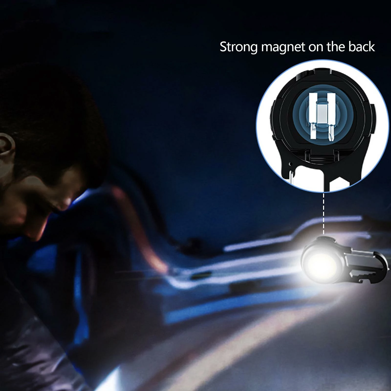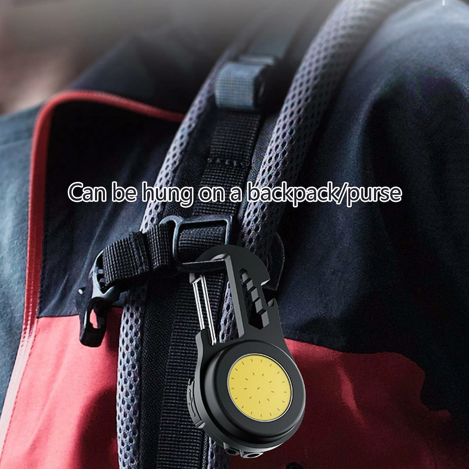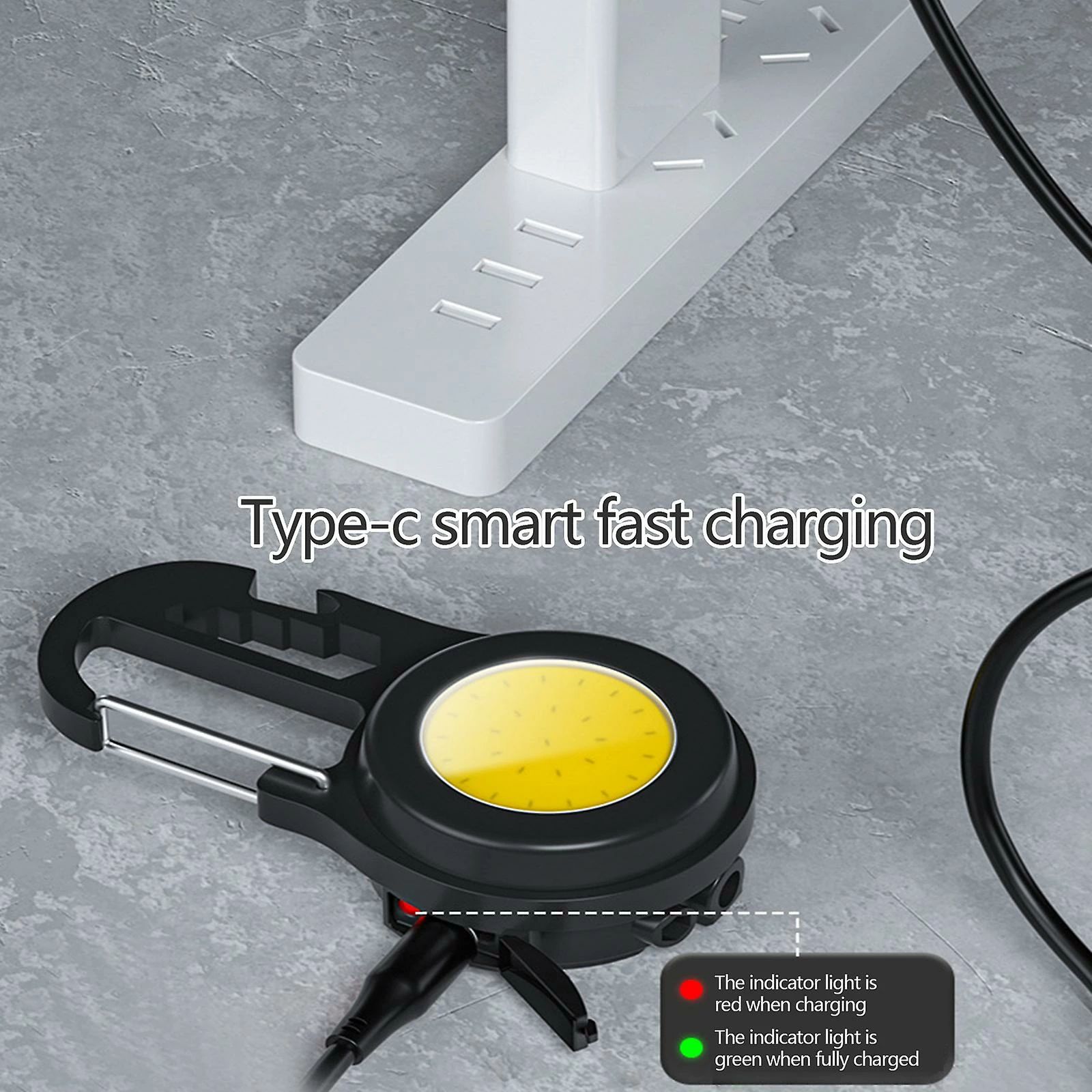Keychain flashlights four-speed switching/ COB light brightness is 800 lumens, and the main light has four light sources; strong light (2H), medium light (4H), flash (6H), long press to burst (1H), 100 square meters In-meter lighting is clearly visible.