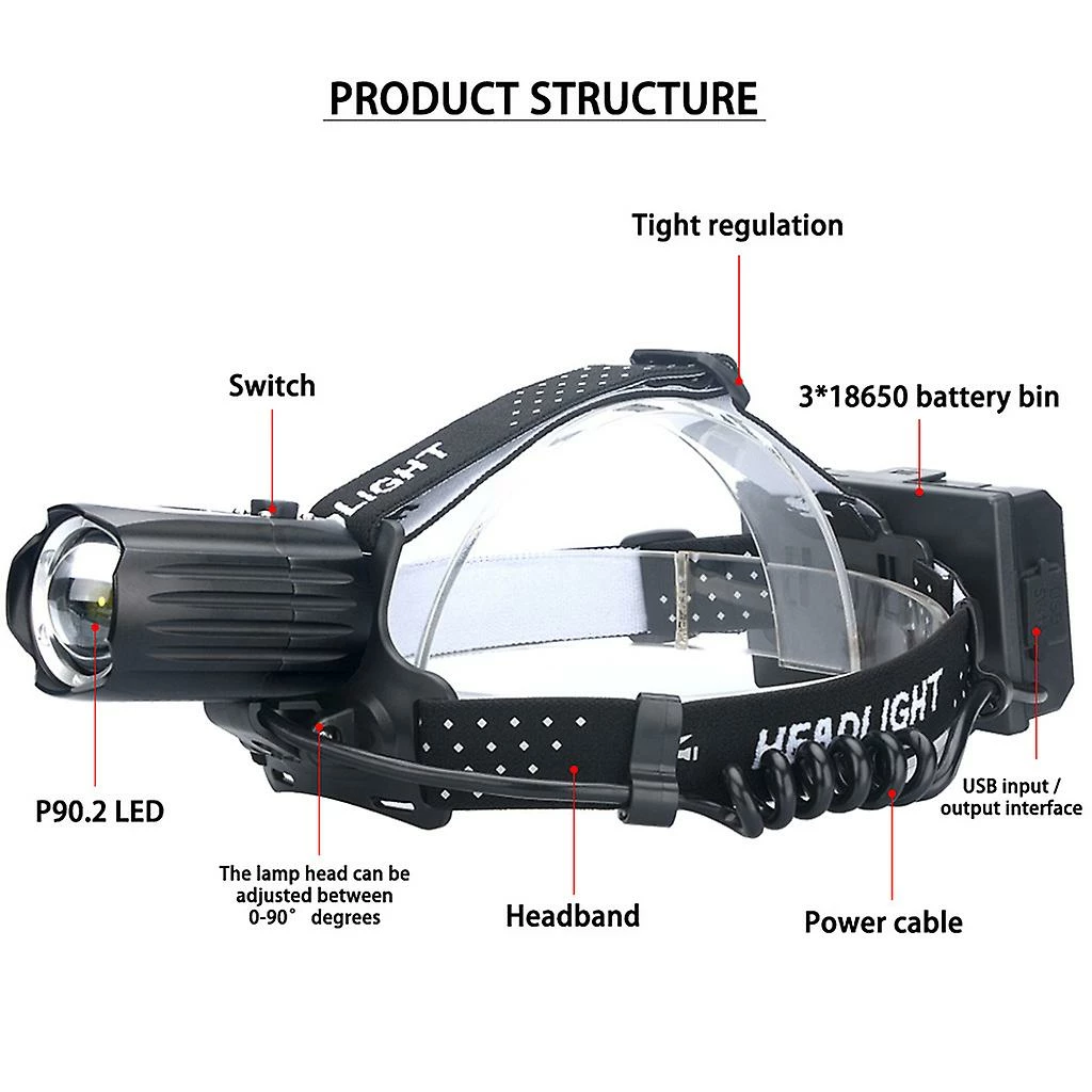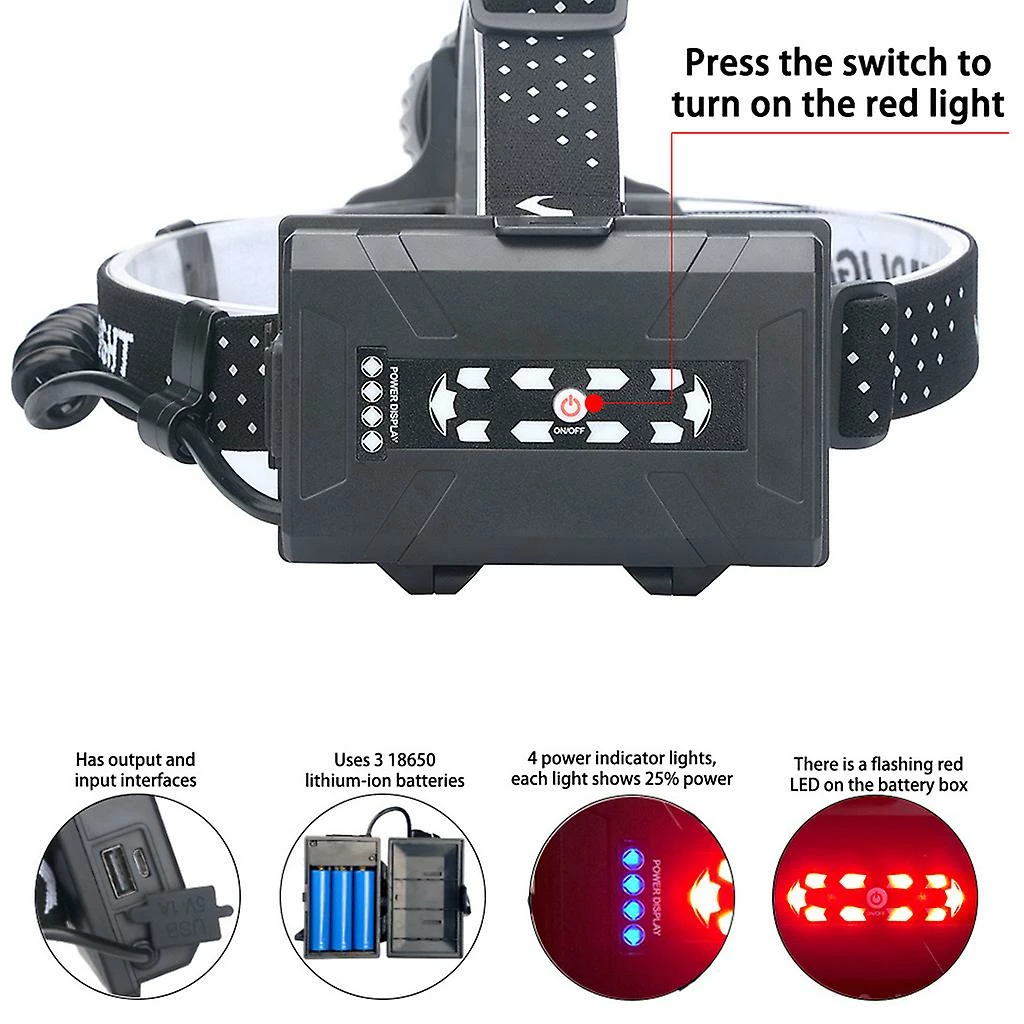 3 Modes,Zoomable, Red Warning Light: Led headlamp with 3 modes: strong light, low light, burst flash. In addition, the zoomable function is more practical, spotlight for long-range observation, and floodlight for large area illumination. The red warning light on the back of the for head torch plays a good warning role. for Ideal for trail running, cycling, camping, hunting, fishing, working, repairing, etc.