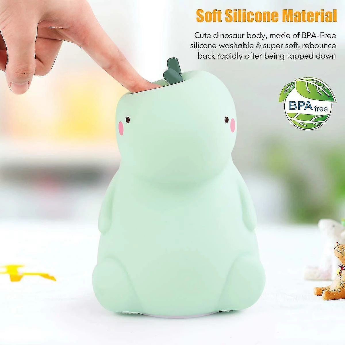 Soothing Color Changing Night Lamp – Cute dinosaur night light with multicolors, offers a soft and calming glow for children of all ages to drive away darkness and provide all-night companion for baby sleeping or breastfeeding & nursery. Easy Tap Control – Switch the bottom ON/OFF button to ON, tap the silicone night light to switch color among white, Red, Green, Blue, or 7 Color Gradient mode, you can choose the color you like. The kids night light is incredibly easy for children to use at playtime or bedtime. Baby Safe Night Light – Made from toy-grade, BPA-Free soft & washable silicone material, the led nursery night light is 100% safe for your baby to learn and play. No sharp edge, No harsh light, No harm to the eyes of your children. Portable USB Rechargeable – Built-in 1200mA rechargeable lithium battery supports more than 8 hours light up time after fully charged, powered by micro usb port, making kids night light portable to use at anywhere. Charging Cable Included. Perfect Gift & Room Decor – The dinosaur bedside lamp is not only a creative gifts to family, friends, kids on Christmas, Thanksgiving, New Year day etc., but also a nice decor for homes, bedrooms, bars, shops etc. It adds a pop of personality to the room.