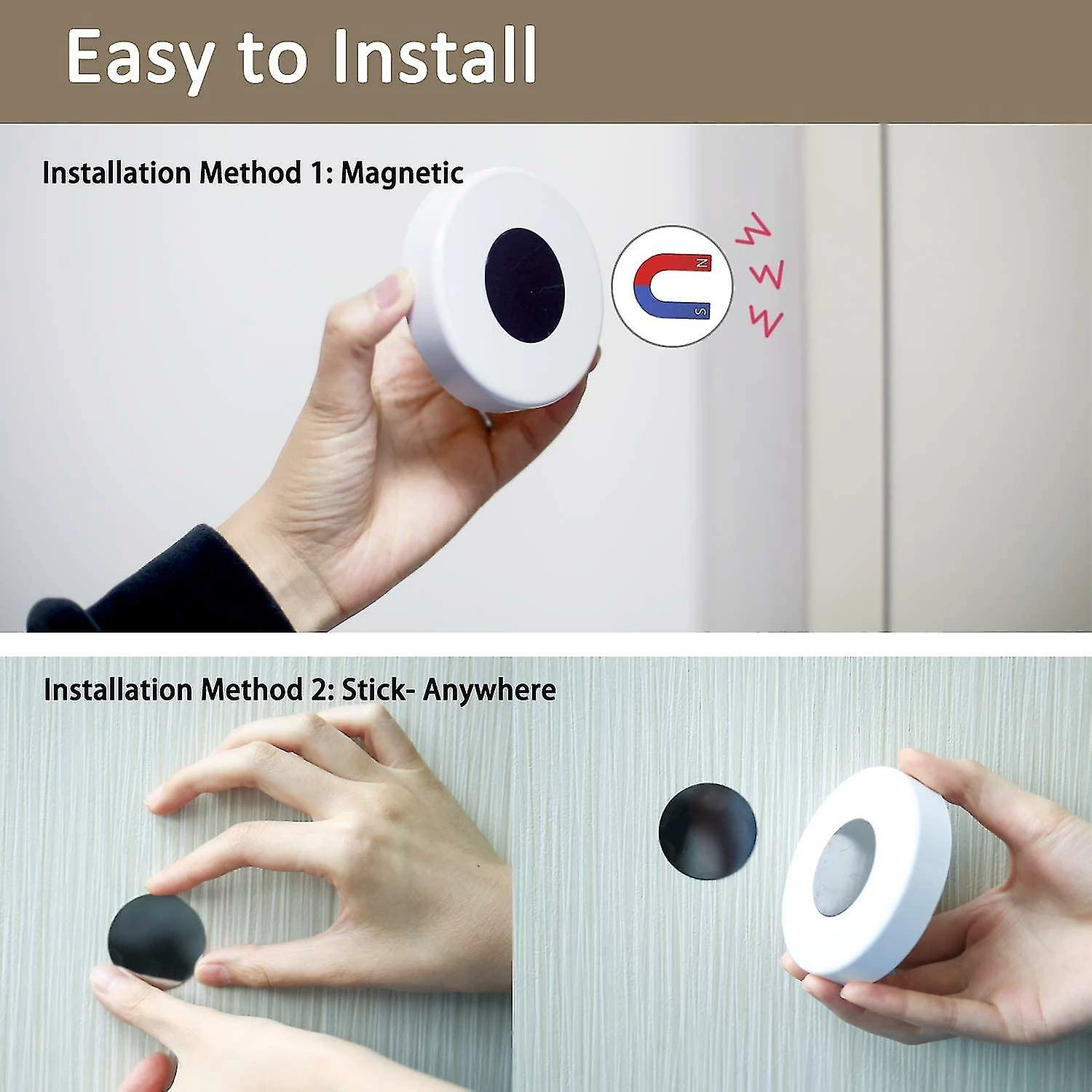 MAGNETIC & STICKY WITH GLUE & PORTABLE – La base du détecteur de lumière intérieur est fixée à l’aide d’une partie magnétique qui peut être directement adsorbée sur une surface en fer. De plus, l’éclairage de l’armoire est fourni avec des coussinets en fer. Accrochez la plaque de fer ronde dans la position souhaitée, puis adsorbez la lumière de l’armoire. La conception magnétique de la veilleuse la rend plus portable. Utilisez-le pour faire face à l’obscurité de la chambre au salon et boire de l’eau.^