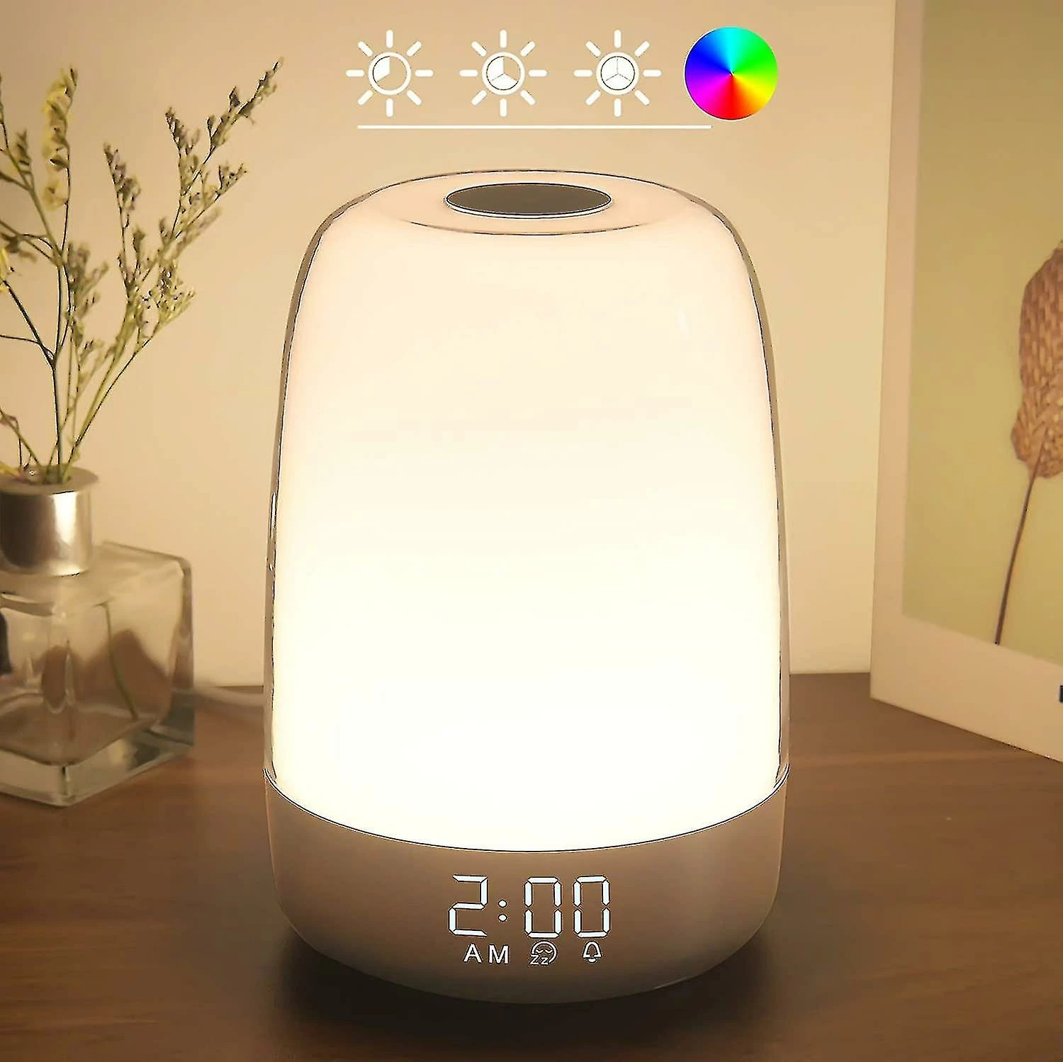 Unbranded Lumière De Nuit Tactile De Réveil Avec Réveil De Simulation De Lever Du Soleil, 3 Façons Dimmable Lampe De Chevet Blanc Chaud