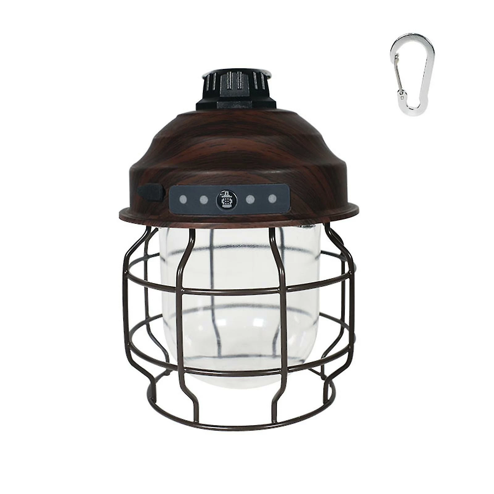 Features:1. USB Rechargeable Camping Light: Built-in high battery capacity and the vintage looking design tent lamp can be used for few hours of use per charge. Besides, the camping lantern comes with USB cord for its rechargeable battery. You can also read the remaining electricity through battery display whenever you want.2. Hanging & Easy to Use: Our portable lantern easily hangs, or stands with its sturdy base. This makes it great for hanging in your tent or lighting your camp. It’s also lightweight and easy to carry with you.3. Sturdy And Waterproof: Vintage LED lantern made of ABS + PS + iron, anti-drop and durable, with the IPX4 waterproof, can withstand certain bad weather.4. Adjustable Lighting: 3 light mode (warm light – white light – warm white light) / stepless dimming, allows you to completely brighten your surroundings or simply set the mood.5. Widely Application: Rechargeable camping lantern is suitable for every outdoor and gardening enthusiast, it is suitable for some atmosphere places, such as, parties, camping, courtyards, backpacks.Specification:Material: ABS + PS + IronLED: 10pcsBattery: 2 x 18650, 3600mAhWaterproof: IPX4Charging Port: Type CFunction: 3 Light Mode (warm Light – White Light – Warm White Light) / Stepless DimmingProduct Color: Copper, Black, Wood GrainProduct Size: 100 x 100 x 140mmProduct Weight: 243gPackage Included:1 x Vintage LED Camping Lantern1 x Charging Cable1 x Hanging Hook1 x Manual