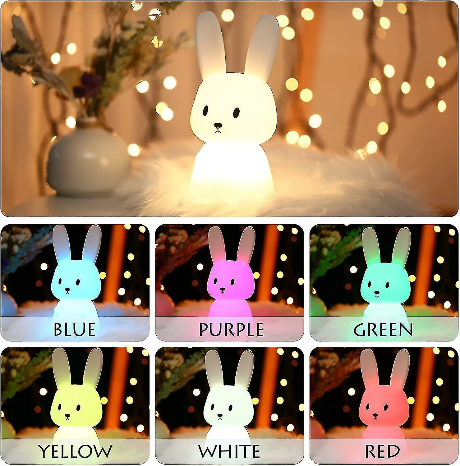 Unbranded Mignon Rabbit Night Light Pour La Chambre Des Enfants, Lampe De Nuit Portable En Silicone Pour Tout-petit, Lampe De Chambre Spongieuse, Décor De Salle Kawaii, Contrôle Du Robinet à Changement De Couleur
