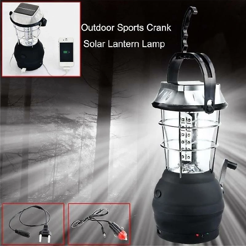 Unbranded Poignée Camping Lanternes Led Lampe Solaire Main Manivelle Imperméable Portable Lumière D’Urgence Noir