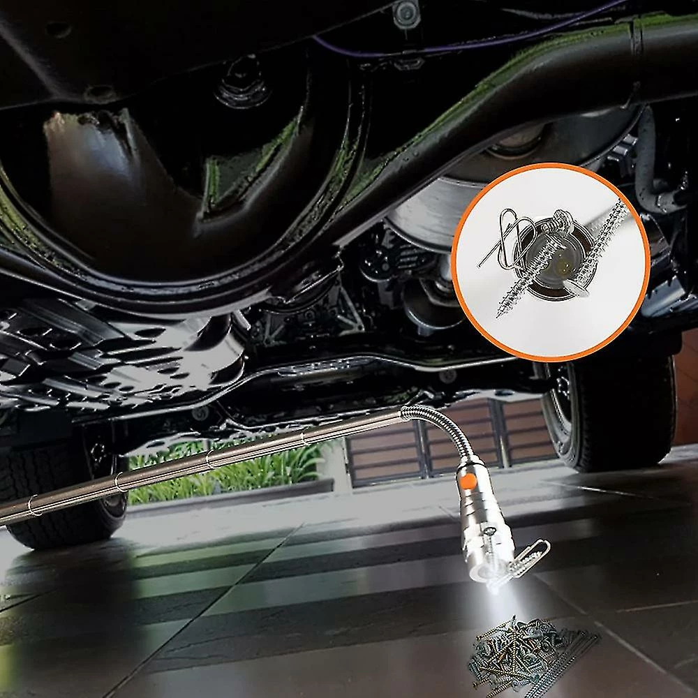 3.Expansion et contraction flexibles: À l’aide de puissantes têtes magnétiques, des écrous en métal, des boulons, des vis et d’autres pièces métalliques et autres objets peuvent être retirés. En plaçant l’outil de ramassage magnétique sur une surface magnétique, la base magnétique forte peut être utilisée mains libres.