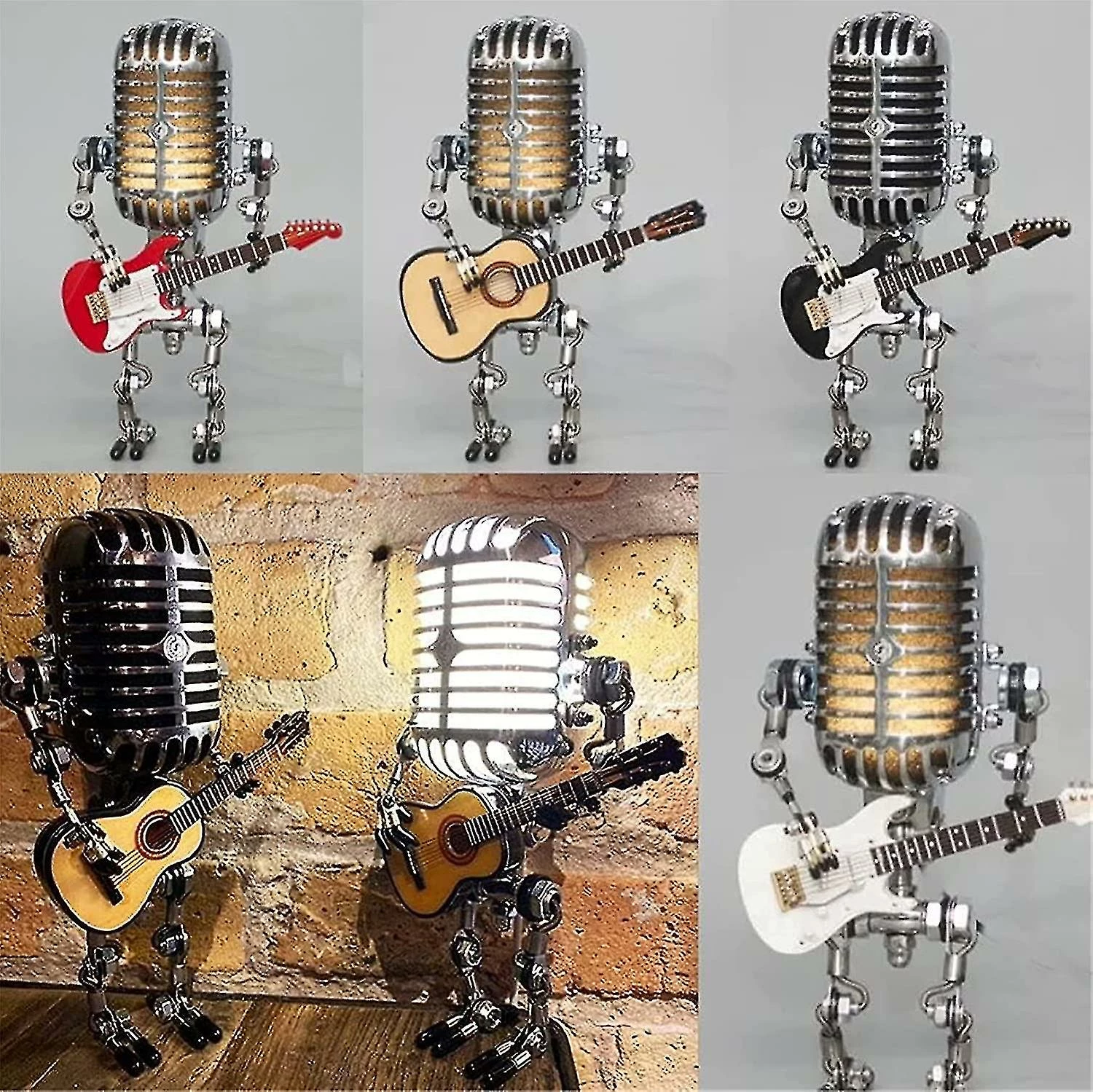 Unbranded Retro Style Microphone Robot Lampe De Bureau Holding Guitare Vintage, Vintage Microphone Robot Touch Dimmer